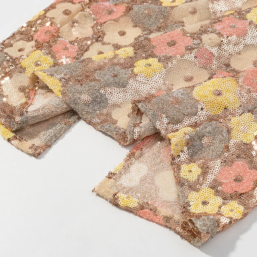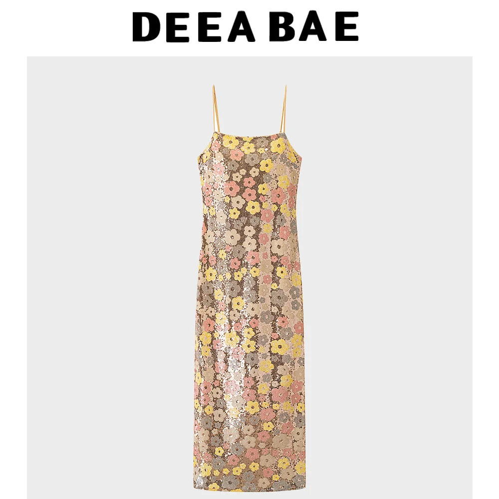 DEEABAE 2025 Summer New Women’s Fashion Style Simple and Versatile Flower Printed sequin Strap Dress