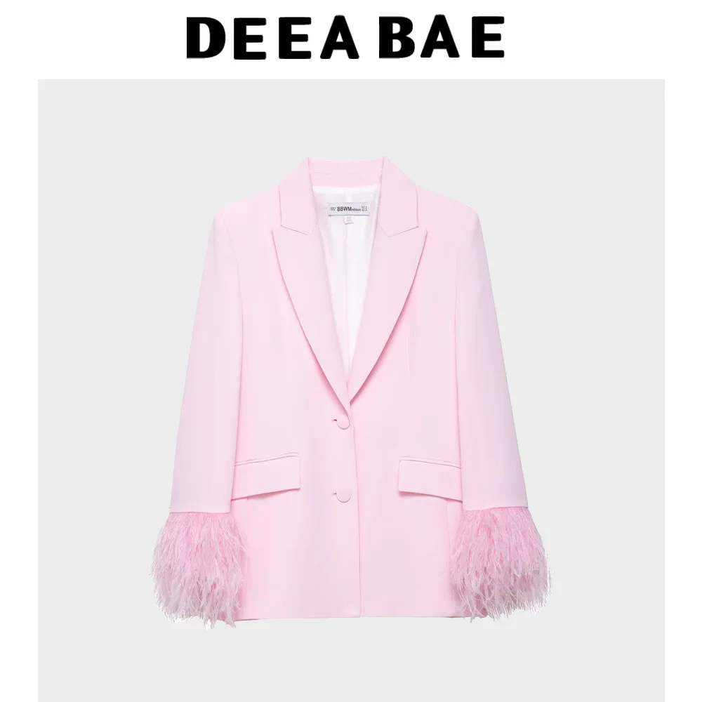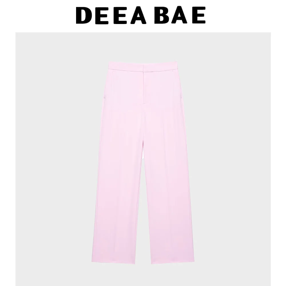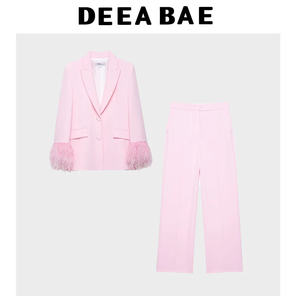 DEEABAE 2025 Summer New Women's Fashion Versatile Feathered Cuff Suit Coat Middle Waist Straight Pants Set
