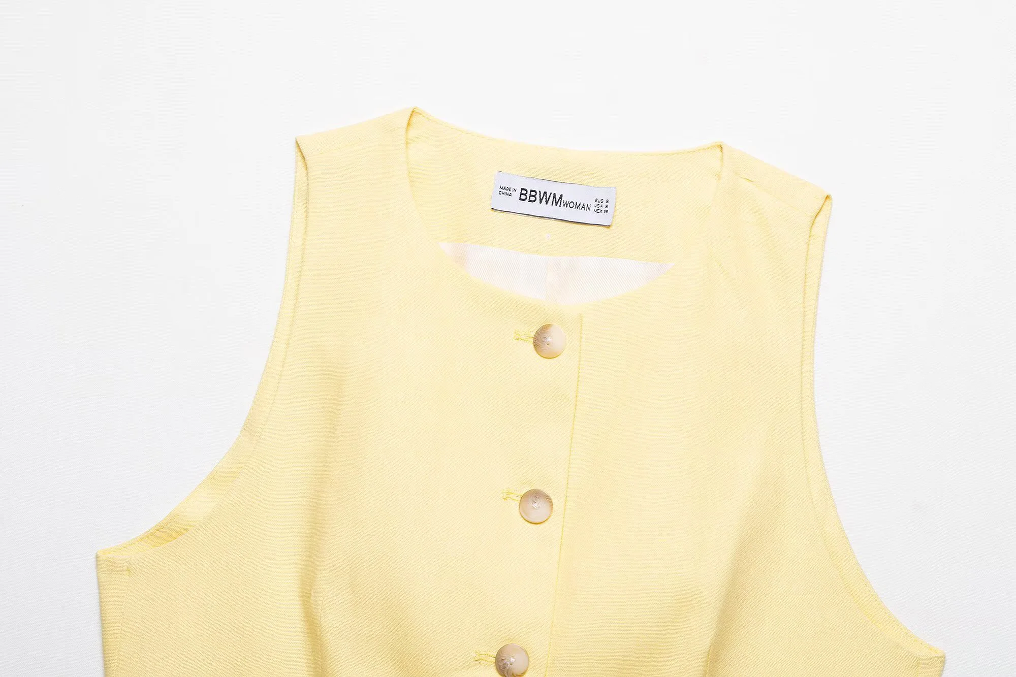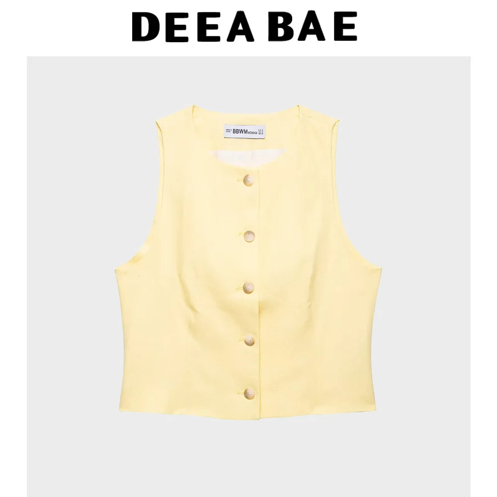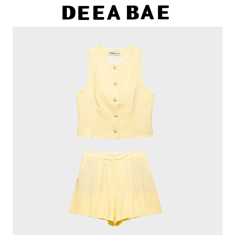 DEEABAE 2025 Summer New Women's Linen Comfortable Sleeveless Round Neck Tank Top Simple High Waist Casual Shorts Set
