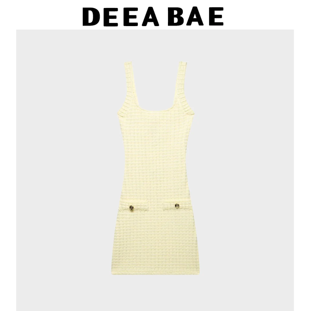 DEEABAE 2025 Summer New Women’s Sweet and Slim Fit Elastic Round Neck Wide Shoulder Strap Short Dress