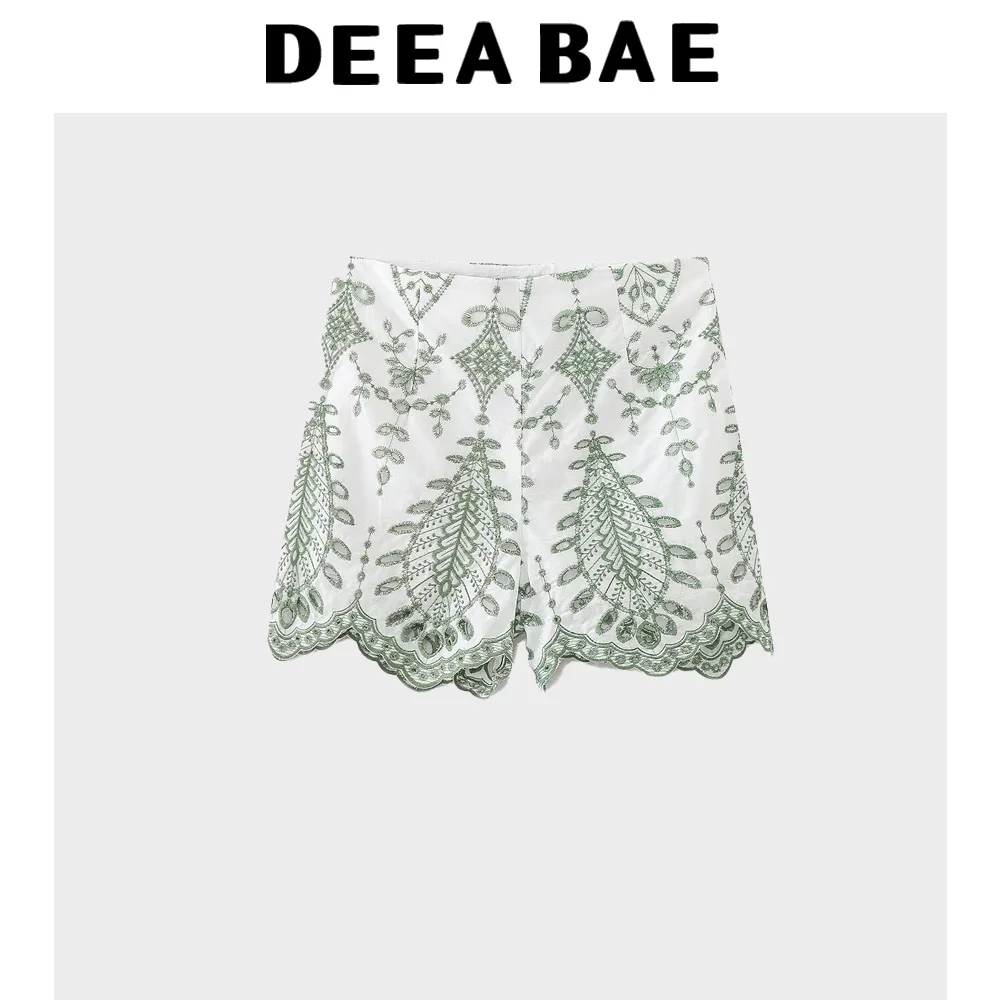 DEEABAE 2025 summer women’s clothing romantic style contrasting color temperament embroidered short top casual shorts set