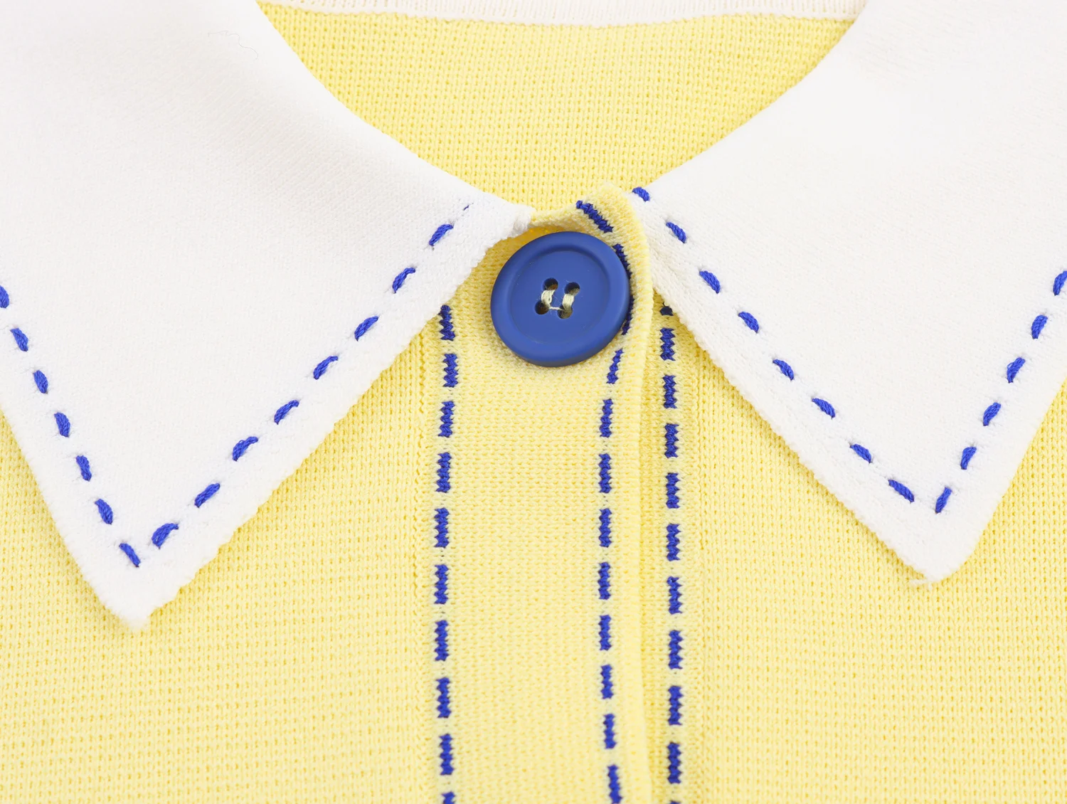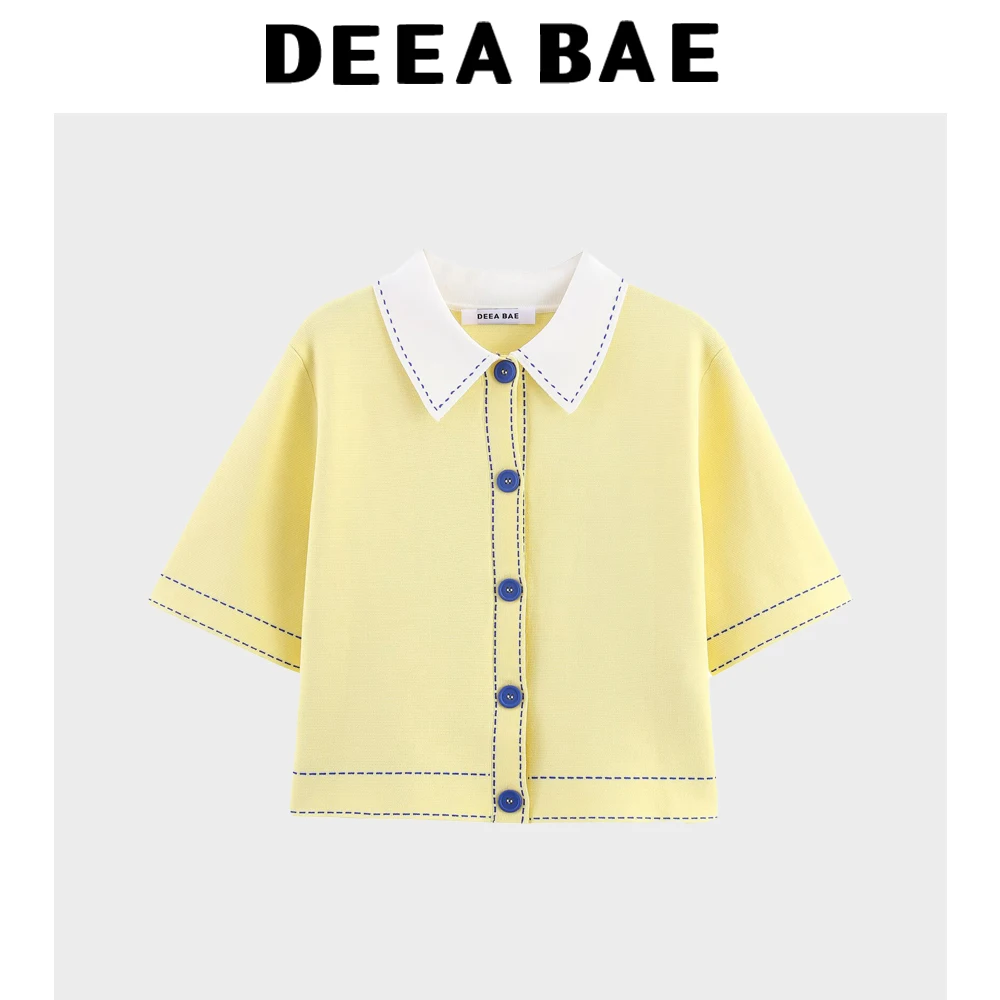 DEEABAE 25 early autumn French contrasting splicing and stitching decoration POLO shirt collar knitted short sleeved jacket
