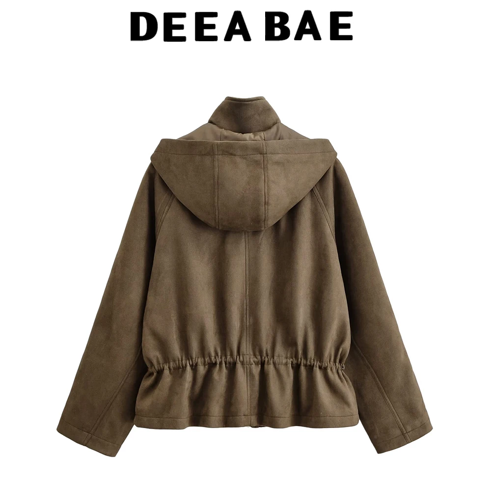 DEEABAE Autumn new women’s retro style fashionable versatile stand up collar long sleeved suede textured jacket