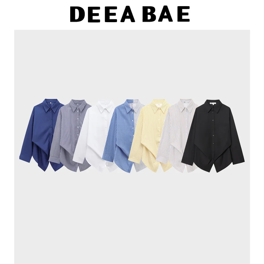 DEEABAE Autumn Women’s Clothes Loose Casual Simple Striped Lapel Bat Sleeve Cotton Poplin Shirt