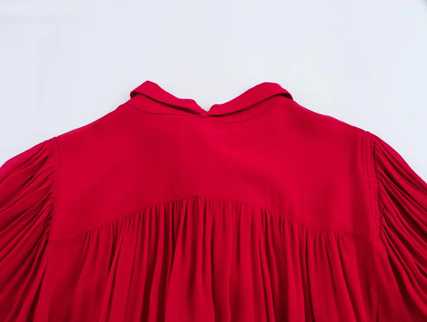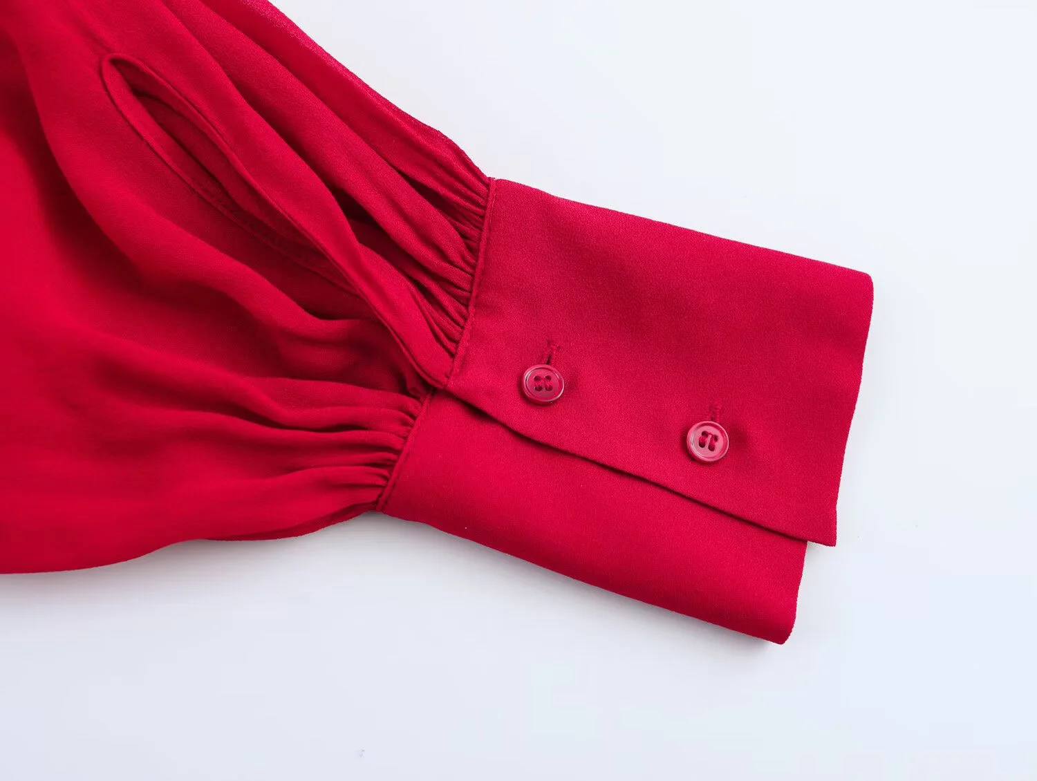 DEEABAE Bow Ribbon Red Chiffon Shirt Women’s Early Spring New French Style High-end Temperament Age-reducing Top