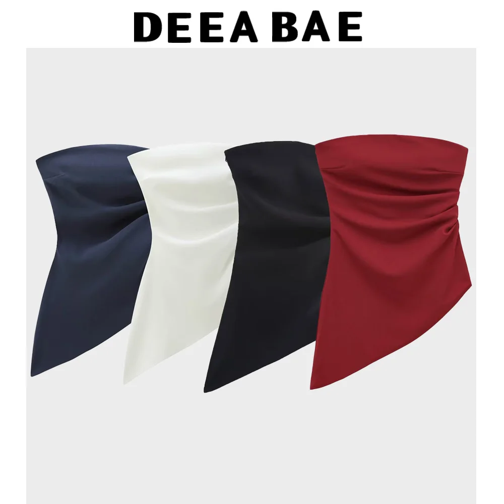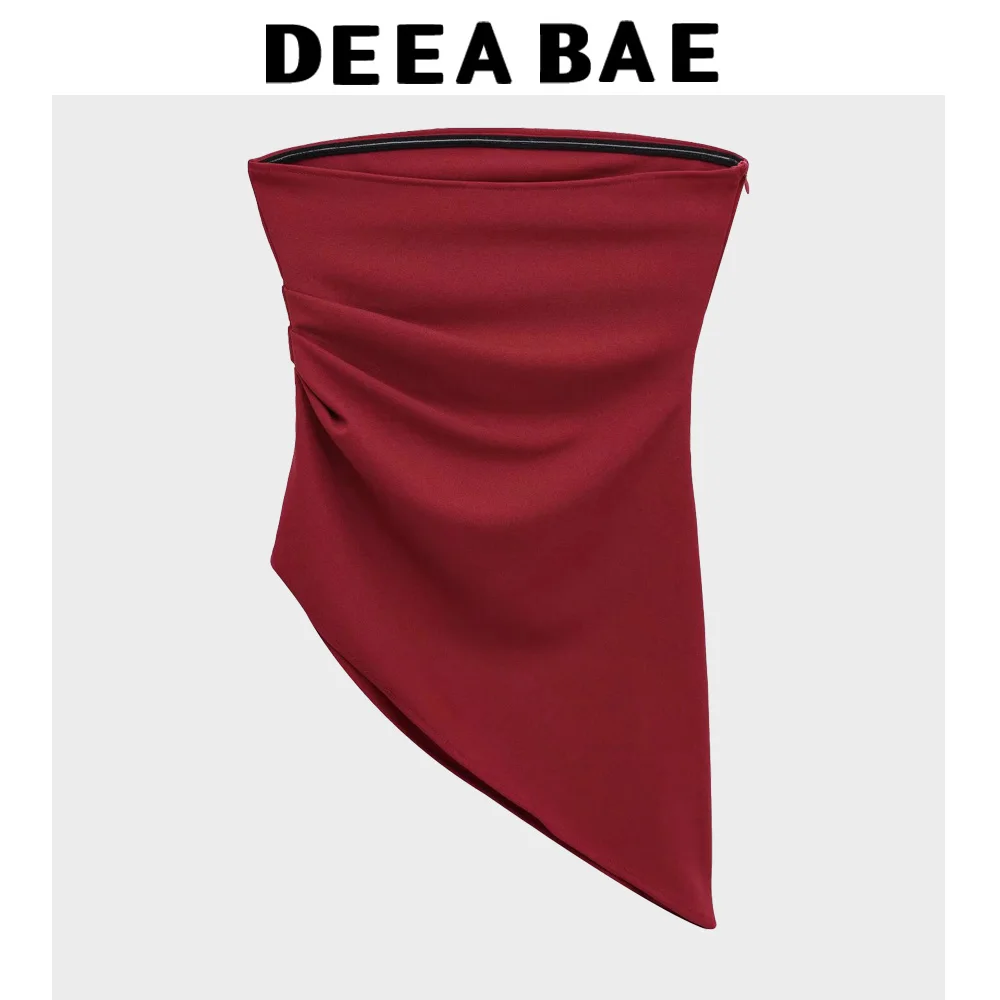 DEEABAE Corset Top Women French Temperament Pleated Asymmetric Sleeveless Backless Simple Tops Sexys