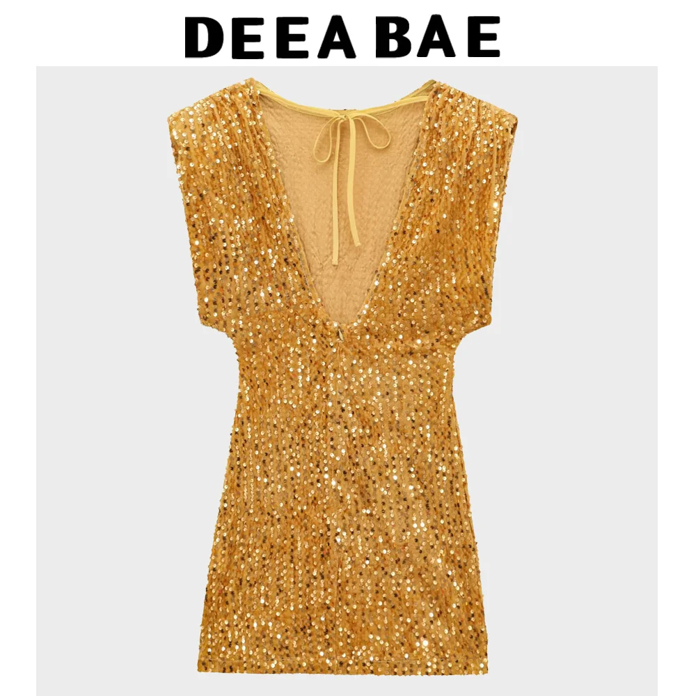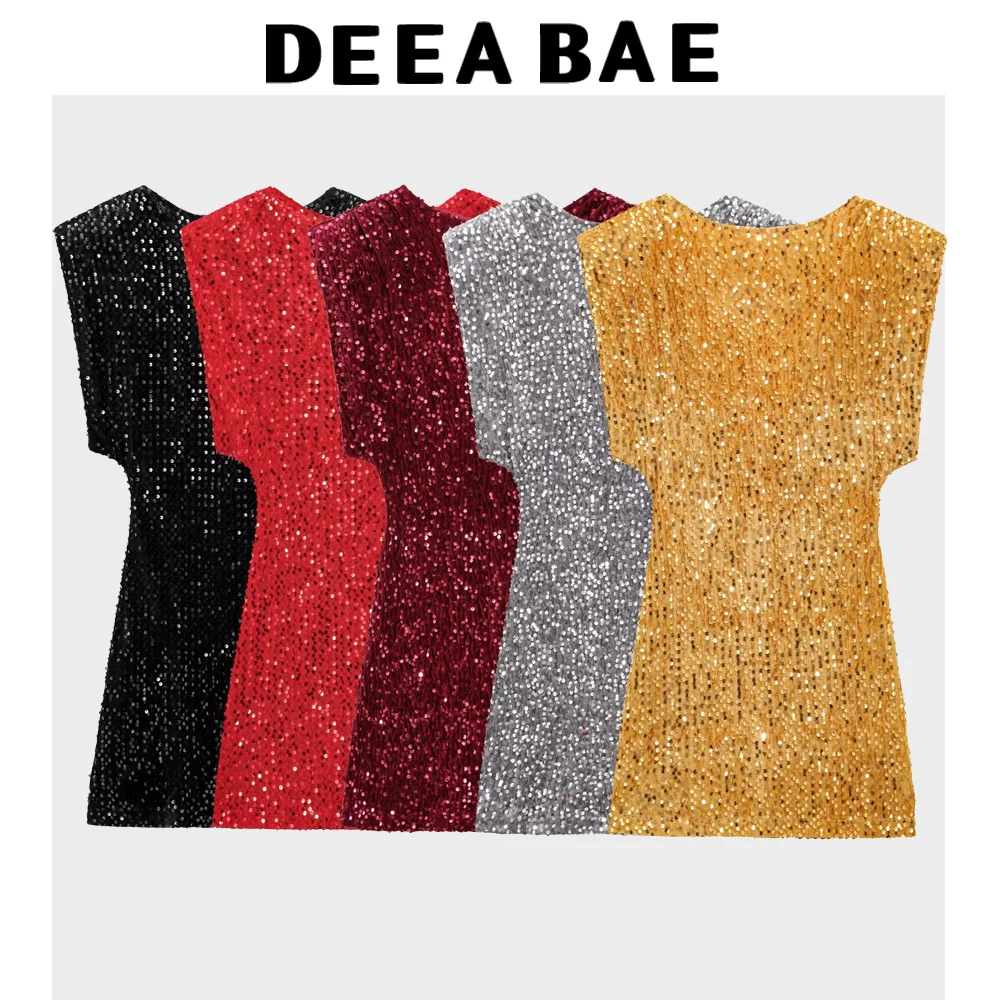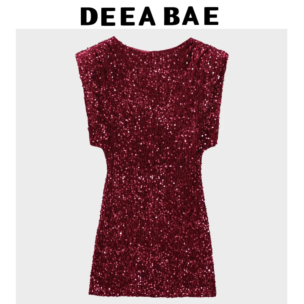 DEEABAE Elegant Party Dresses Woman Round Neck Sleeveless Slim Fit Temperament Slim Sequin Dress Elegant Short Party Dresses