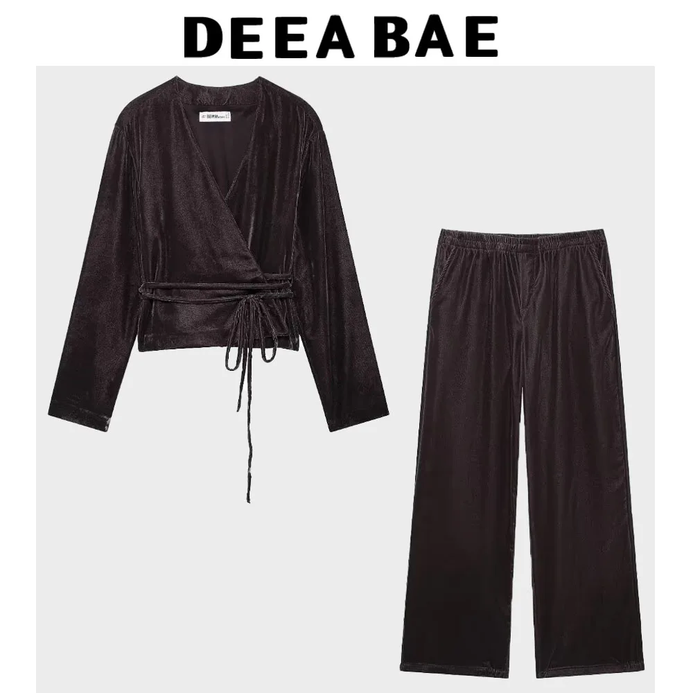 DEEABAE European Snd American Style Women's Clothing Temperament, Fashionable And Casual Velvet Top, Flared Casual Pants