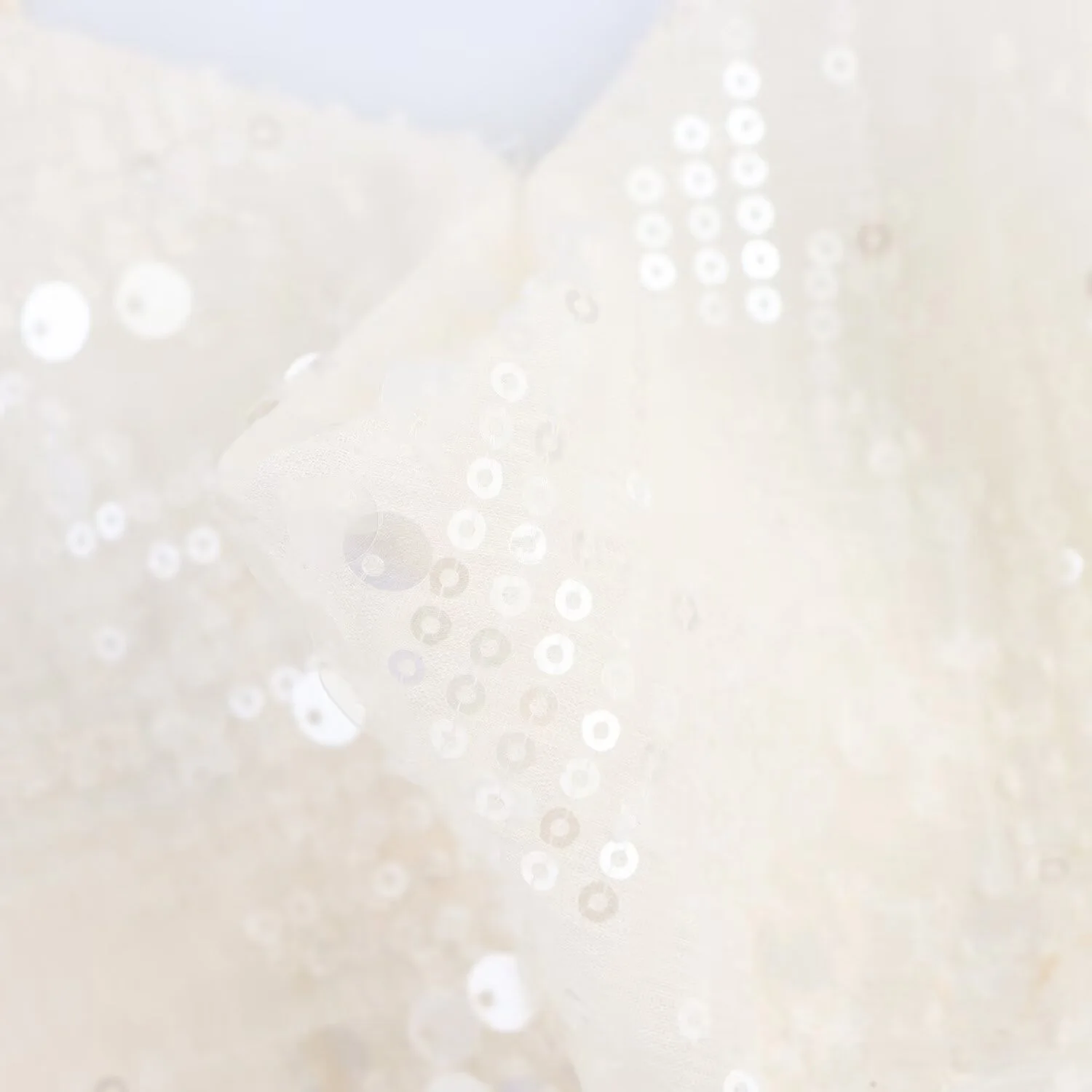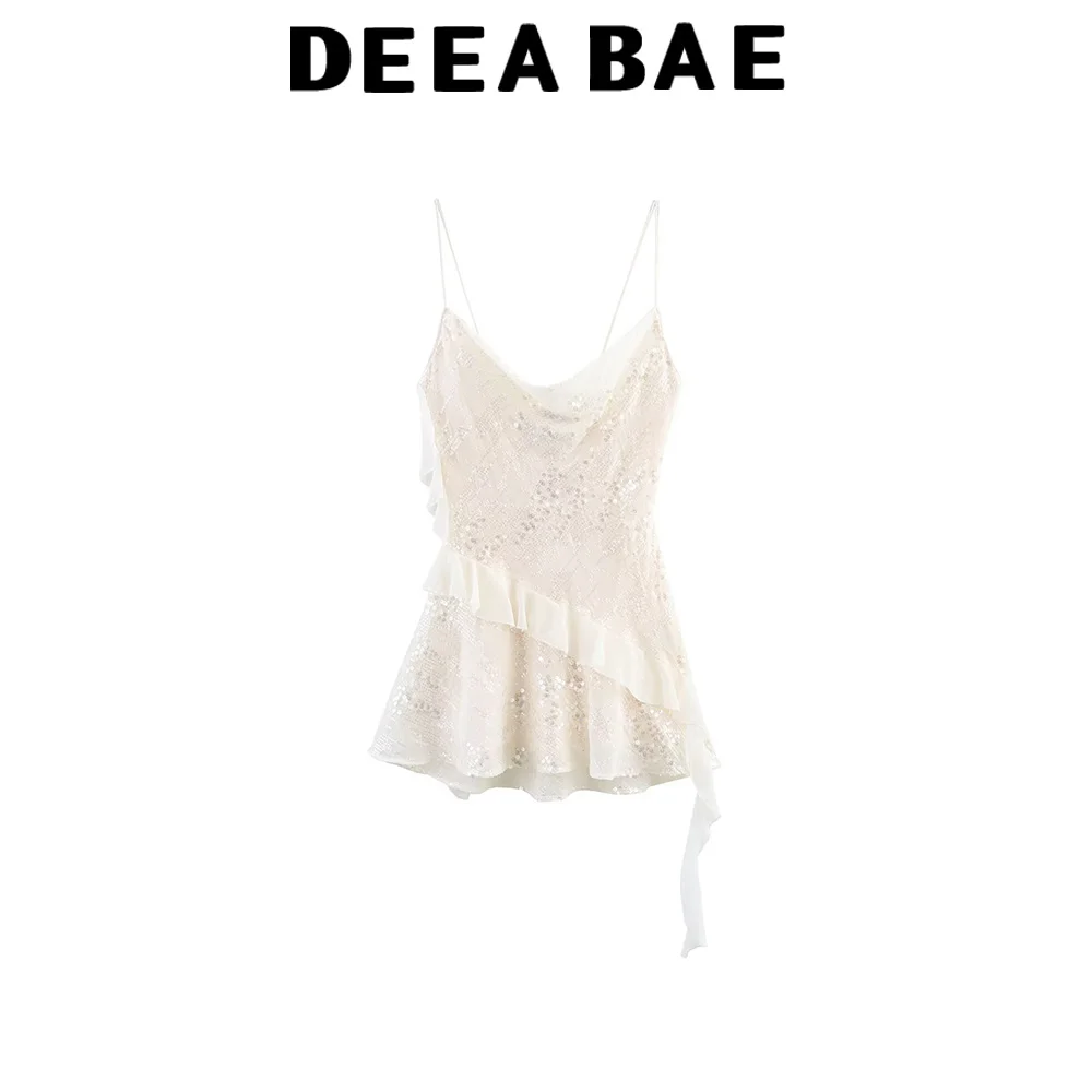 DEEABAE Exquisite white heavy industry sequin temperament ruffled edge swing collar waist cinching suspender short skirt dress