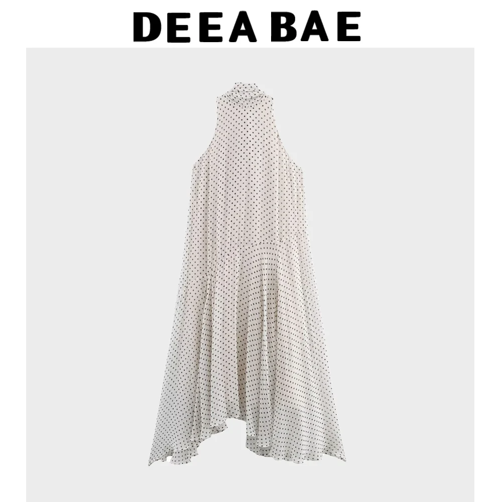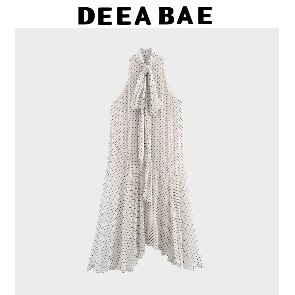 DEEABAE French Bow Polka Dot Neck Dress For Women In Summer 2025 New Island Vacation Style Sleeveless Vest Long Skirt