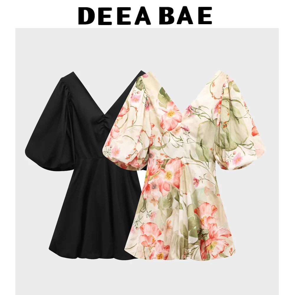 DEEABAE French Style Exquisite Floral Dress With Summer Bubble Sleeves Cinched Waist To Show Off Slimming And Fluffy Skirt