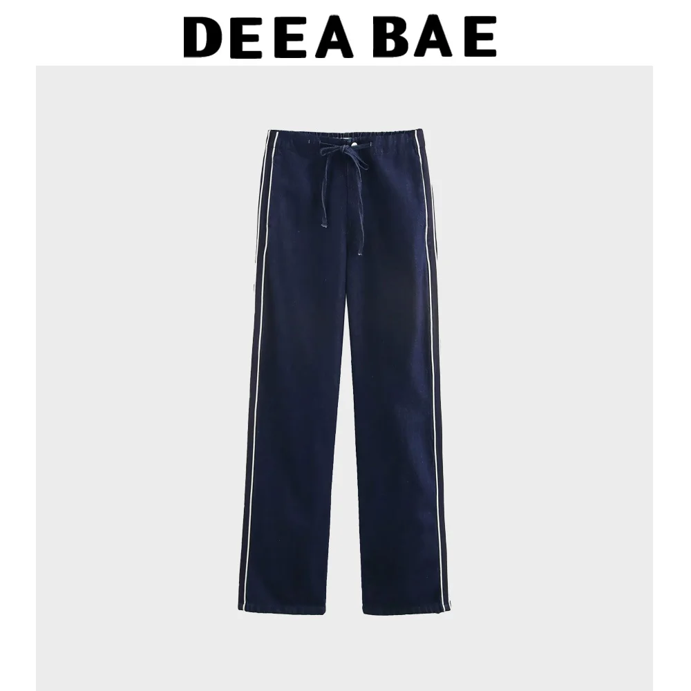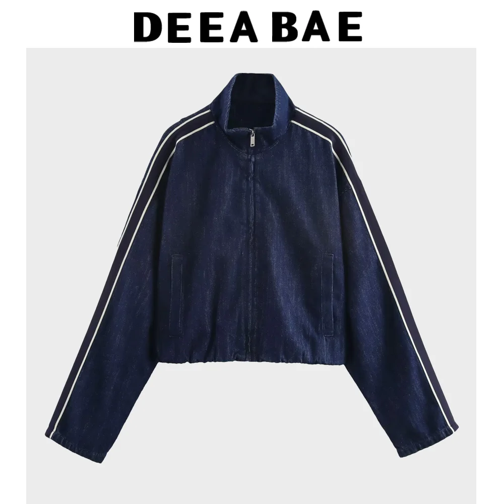 DEEABAE Jean Outfit Sets Women's Patchwork Striped Denim Jacket Coat Cotton Loose Side Bands Comfortable Jeans