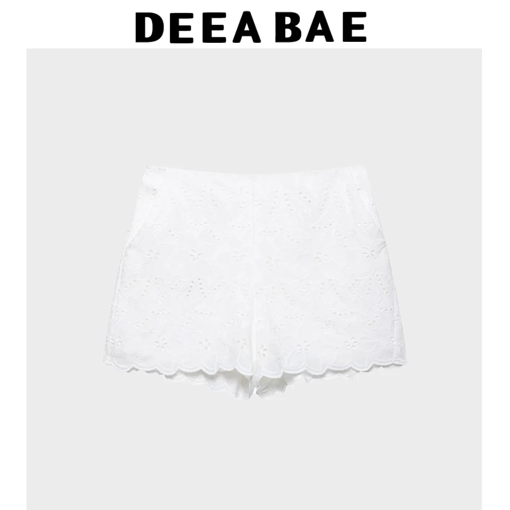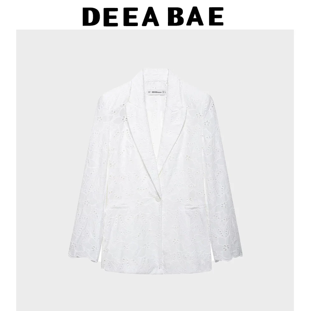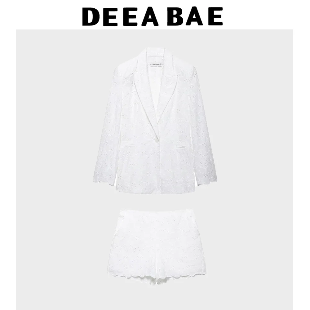 DEEABAE Korean Spring And Autumn New Style Hollow Embroidery Single Button Pocket Suit Coat Casual Shorts Set