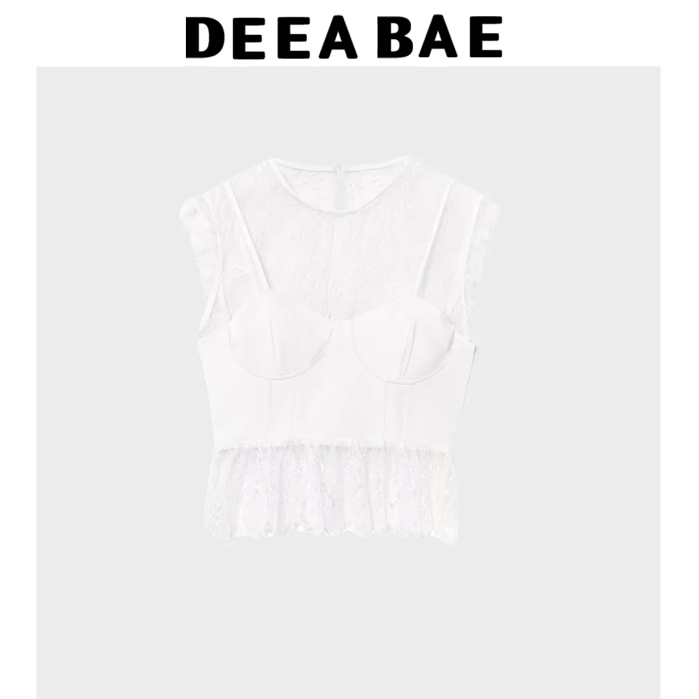 DEEABAE Korean Style Lace Patchwork Fake Two Piece Sleeveless Vest For Women’s Spring Hot Girls Unique And Super Beautiful Top