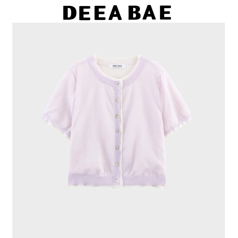 DEEABAE Korean Style Lazy Style Single Breasted Knitted Cardigan Round Neck Short Sleeved Slimming 2025 Summer Short Top