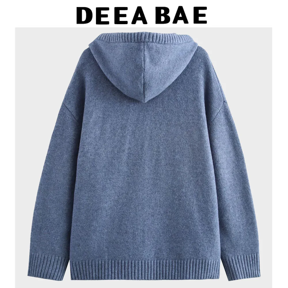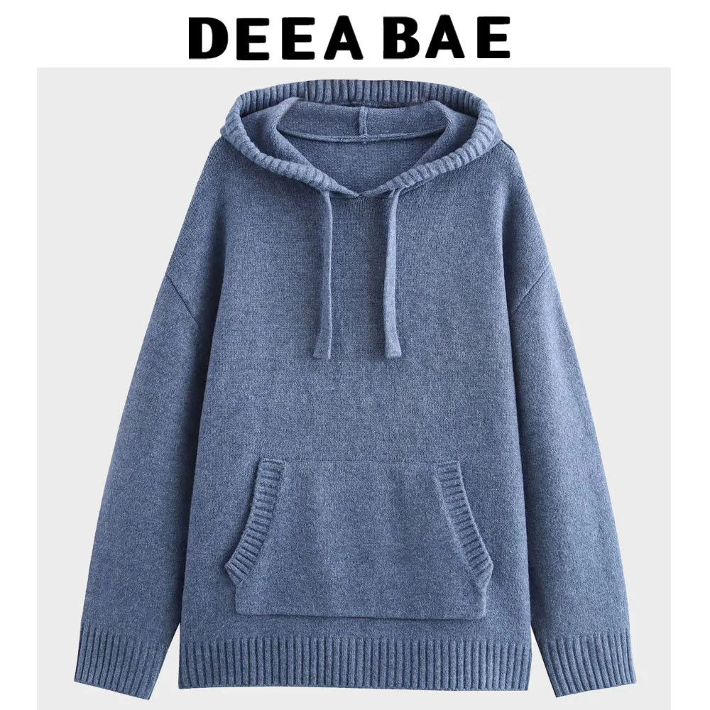 DEEABAE Korean Style Women's Clothing New Loose Lace Up Hooded Long Sleeved Kangaroo Pocket Ribbed Layer Knitwear Hoodie