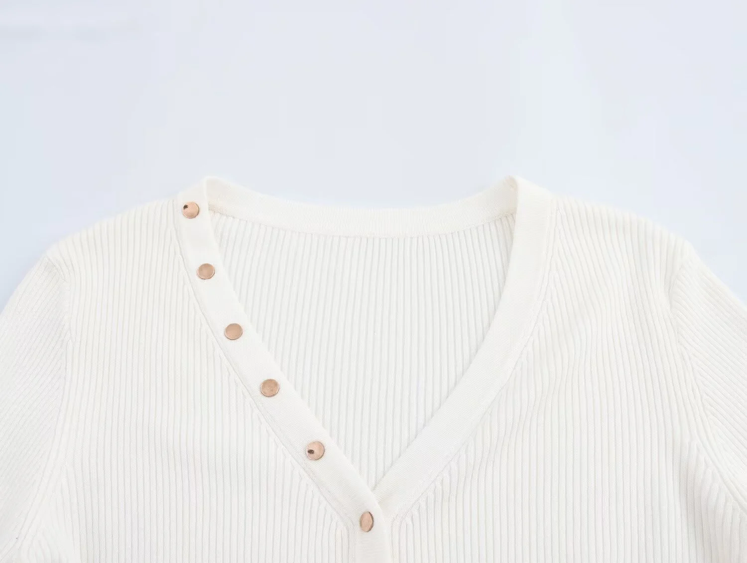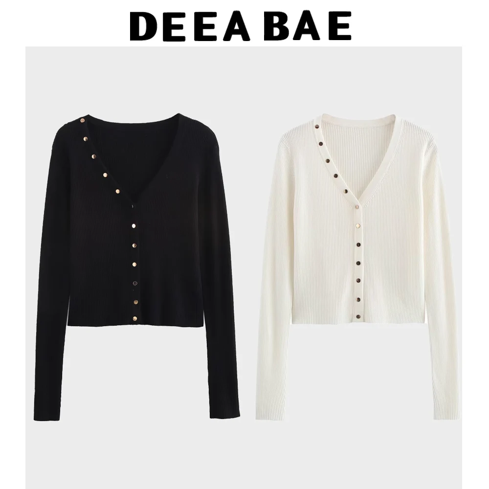 DEEABAE Korean Version Slim Fit V-neck Knitted Sweater Design 2025 Spring And Autumn Sweater Slimming New Long Sleeved Base Top