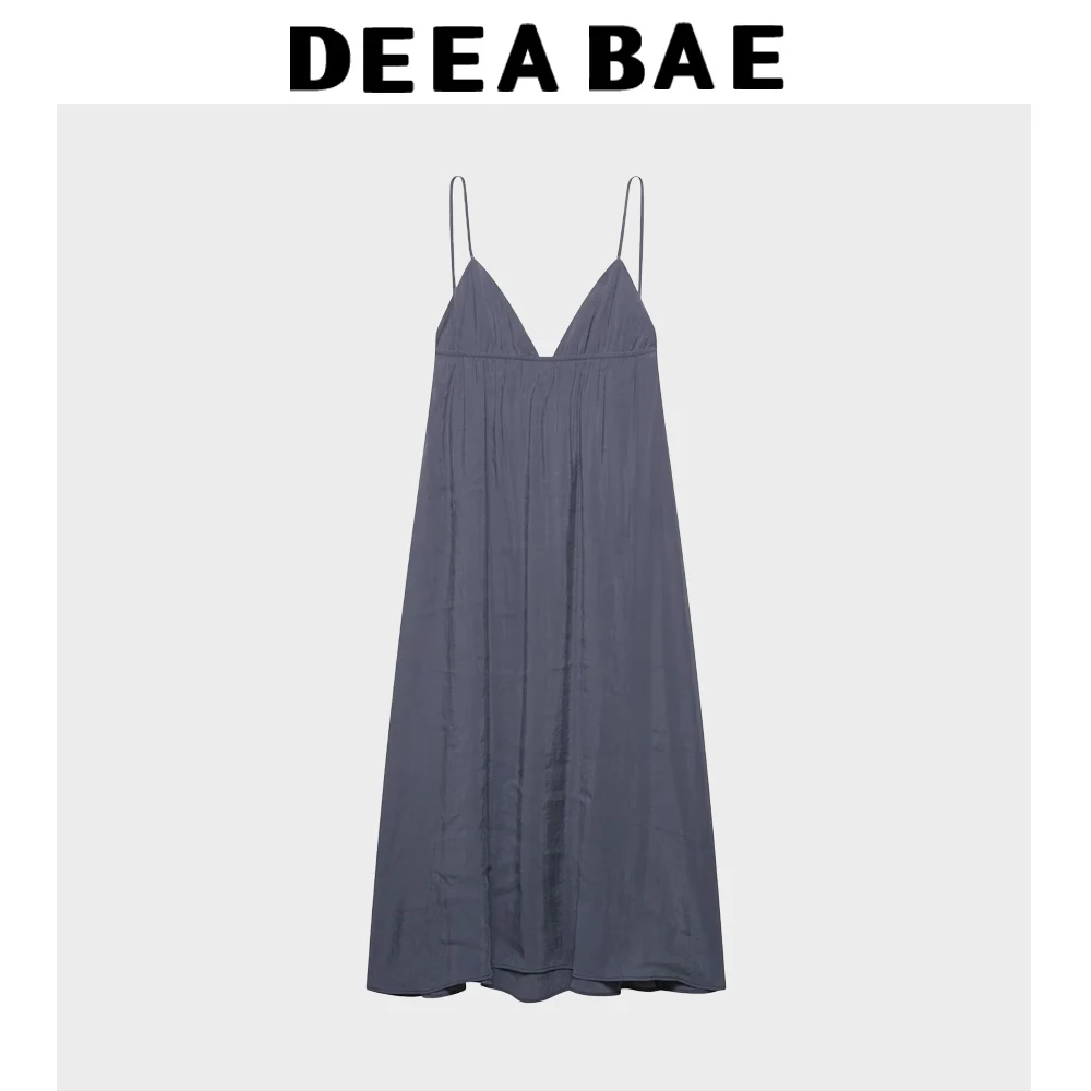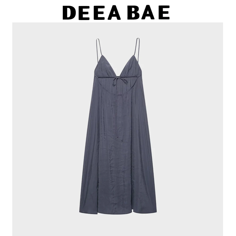 DEEABAE Korean Women’s Summer New Fashion Style Loose V-neck Backless Camisole Hanging Flute Dress