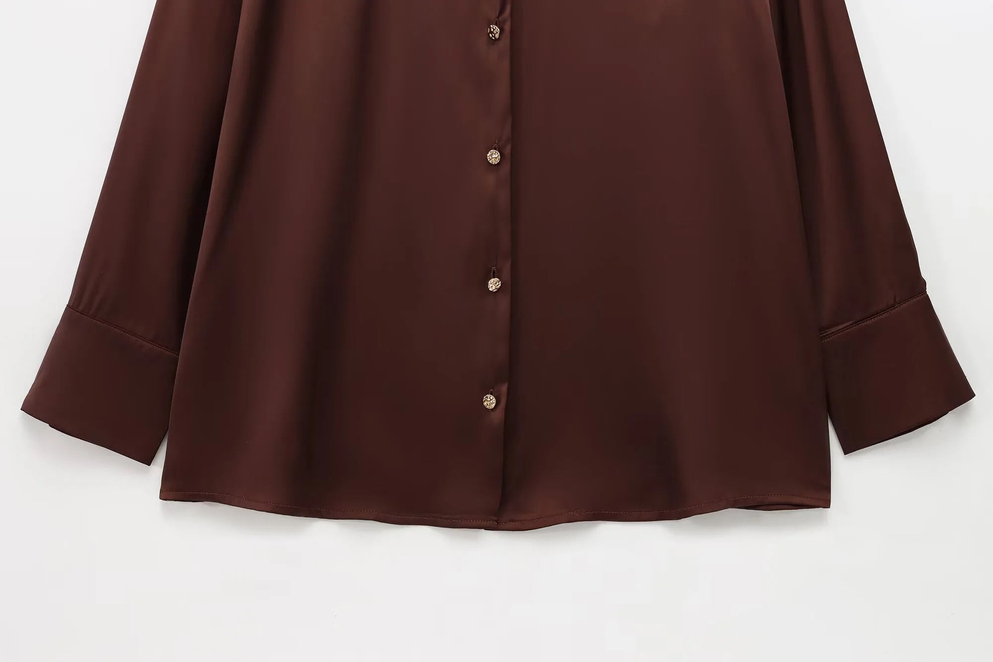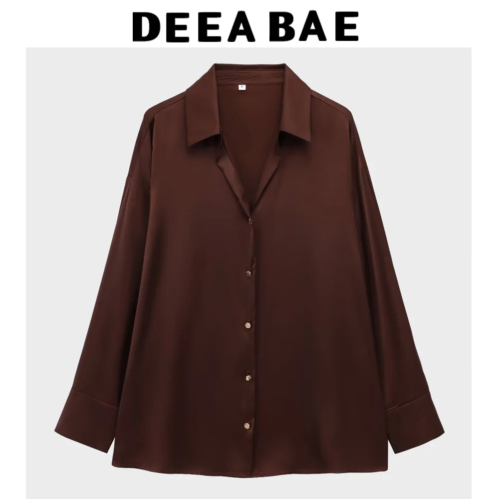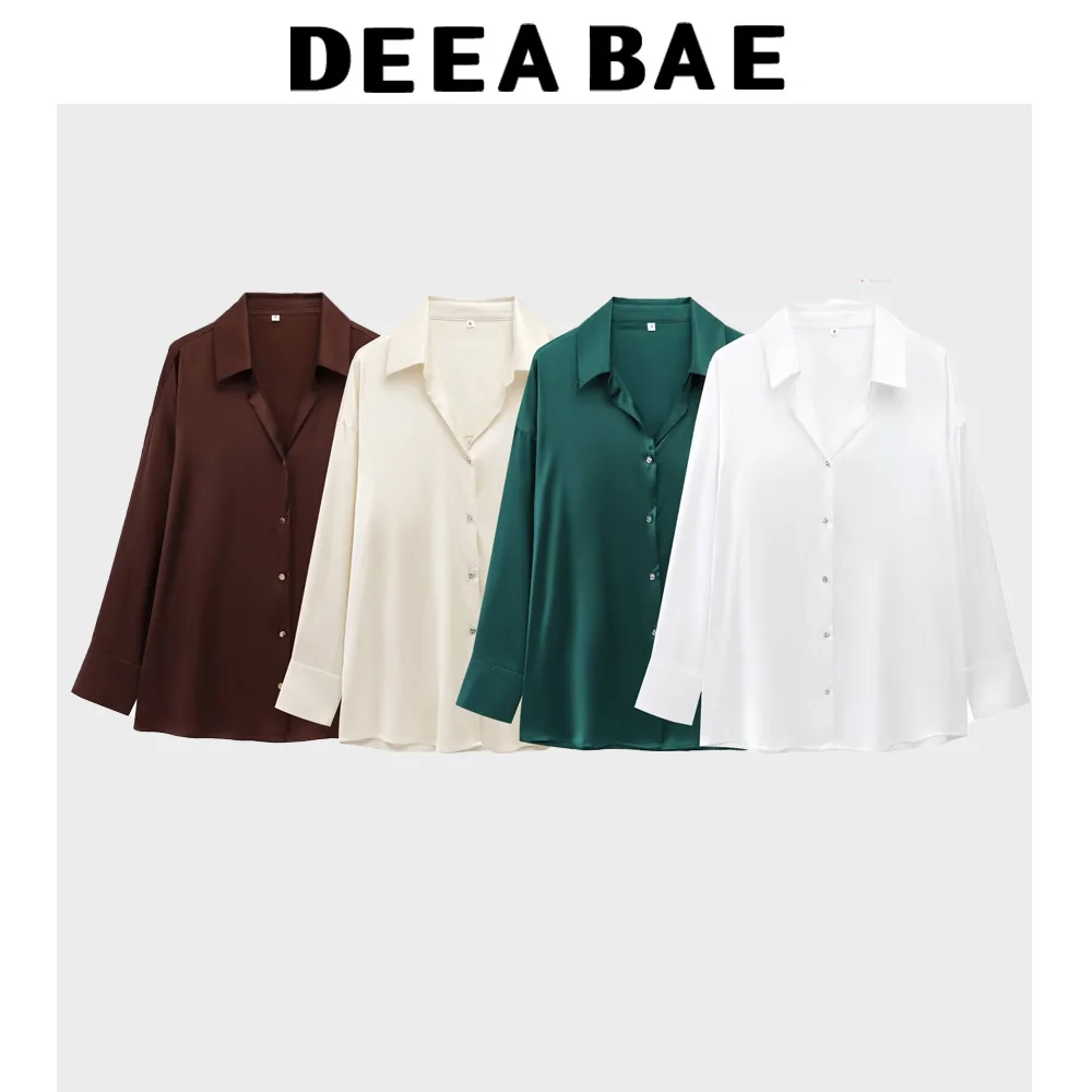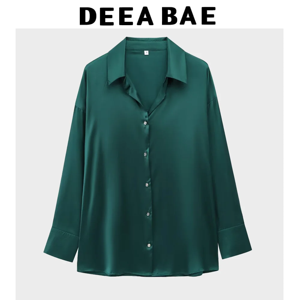 DEEABAE Lustrous Silky Satin Long-sleeved Shirt Spring Loose Slim Solid Color Satin Casual Top