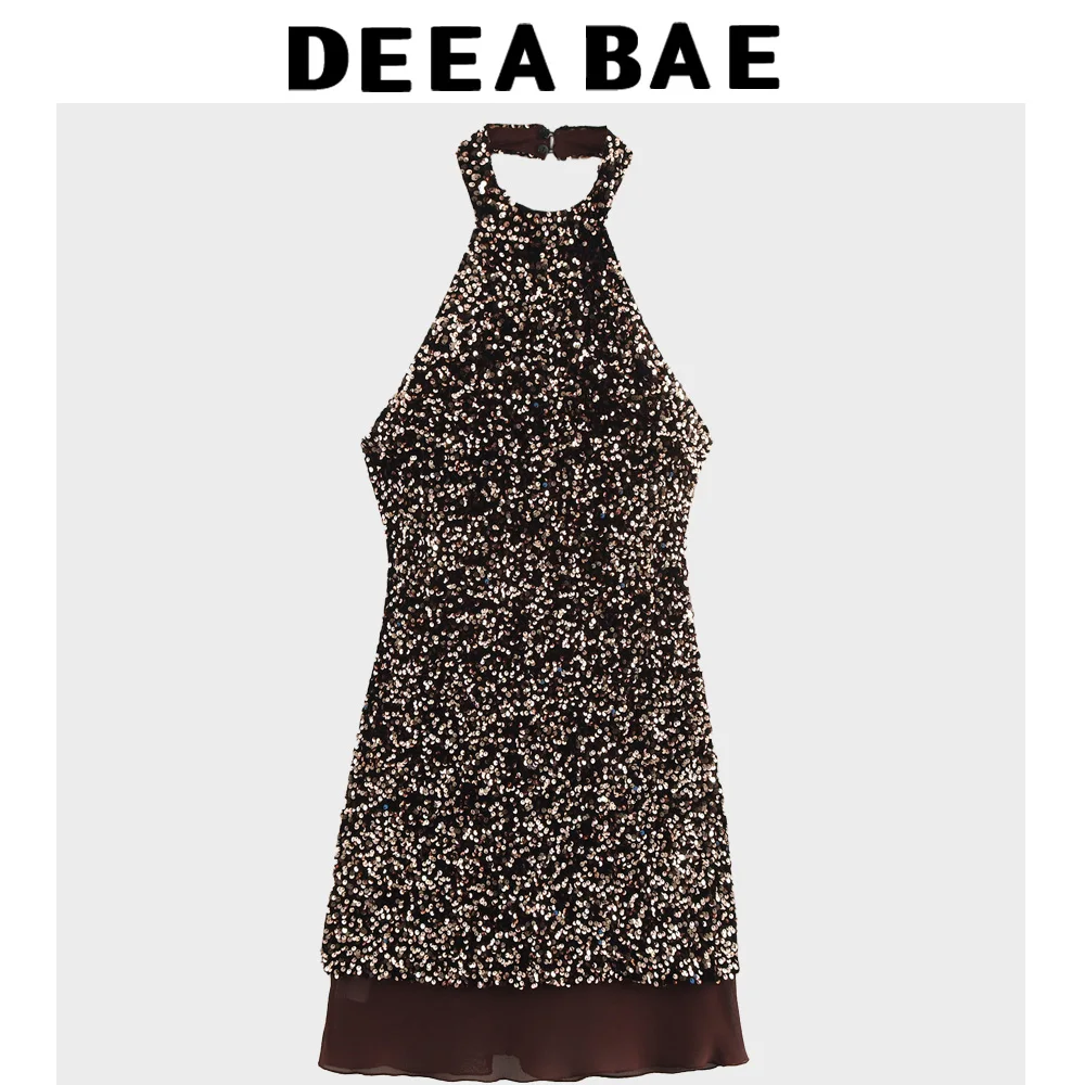 DEEABAE Luxurious Women's Evening Dresses Sleeveless Slim Fit Temperament Sexy Sequined Halter Neck Dress Nice Dresses For Women
