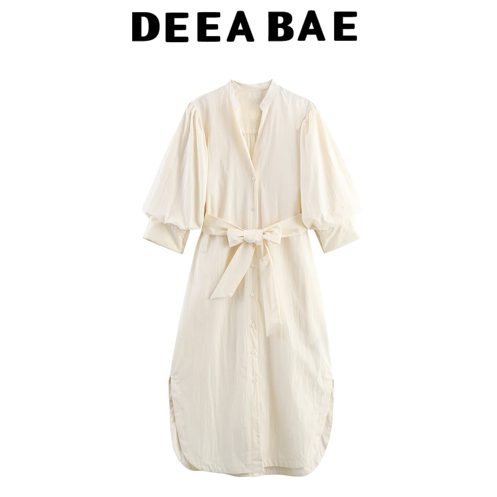 DEEABAE New European and American style women's fashion versatile simple bubble sleeve shirt style dress