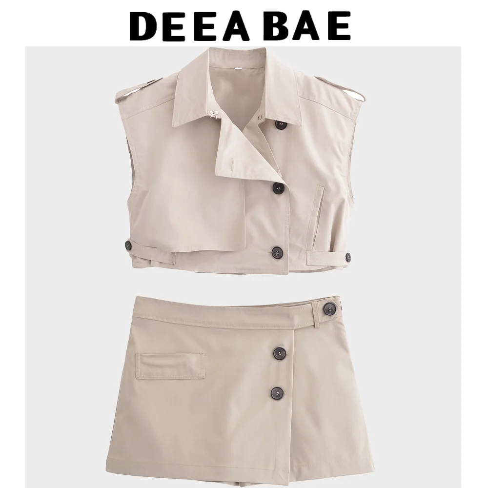 DEEABAE New Women's Clothing With Strap Decoration Sleeveless Casual Short Top And Simple Skirt Pants