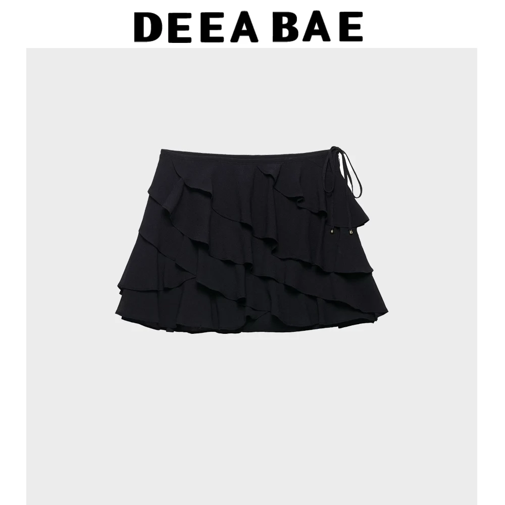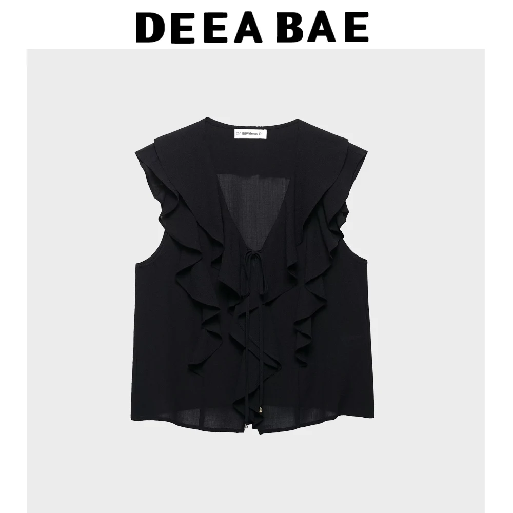 DEEABAE New Women's Fashion Minimalist Layered Decoration Sleeveless Shirt With Pleated Edges Elegant Mini Skirt Set
