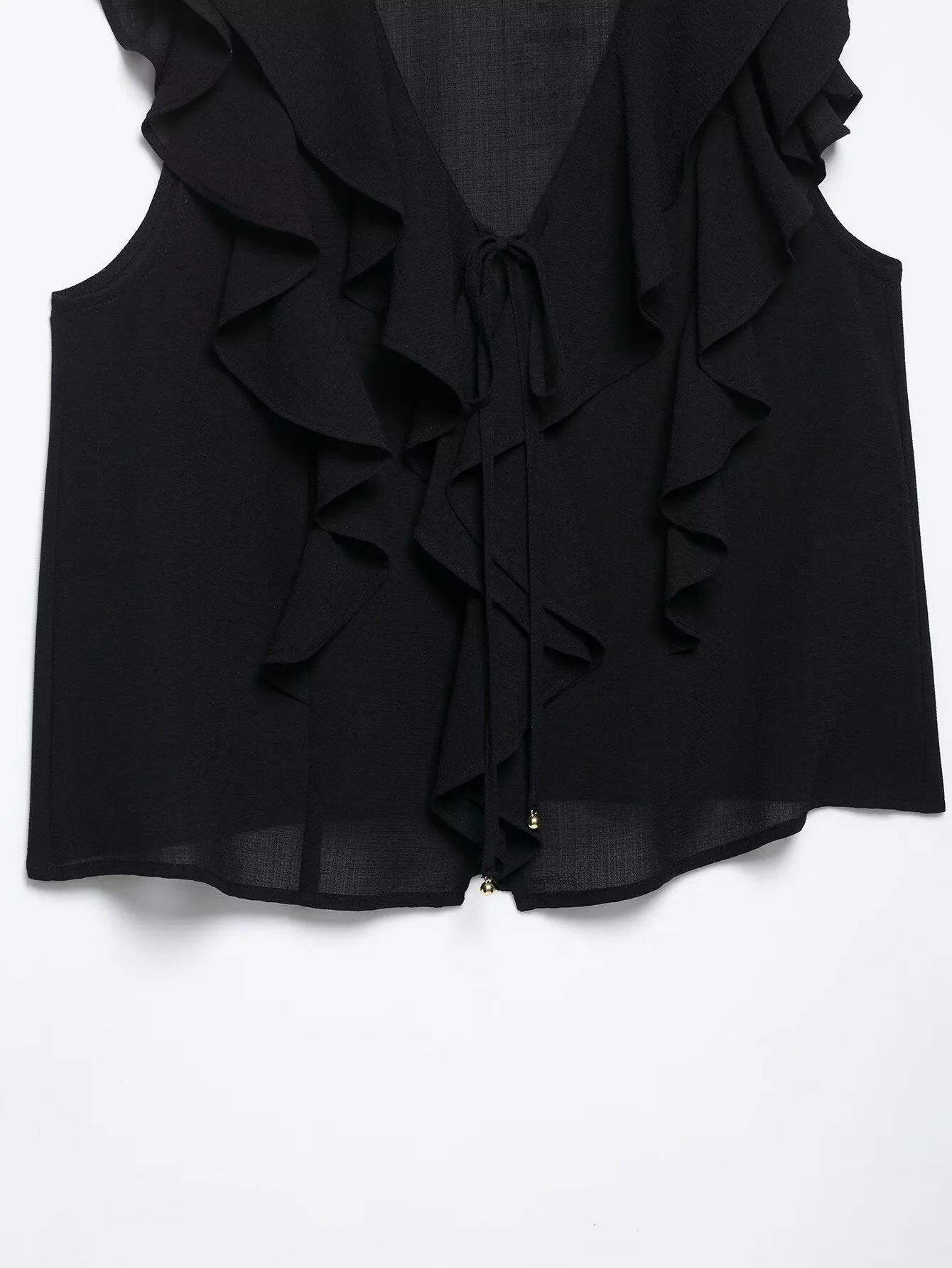 DEEABAE New Women’s Fashion Minimalist Layered Decoration Sleeveless Shirt With Pleated Edges Elegant Mini Skirt Set