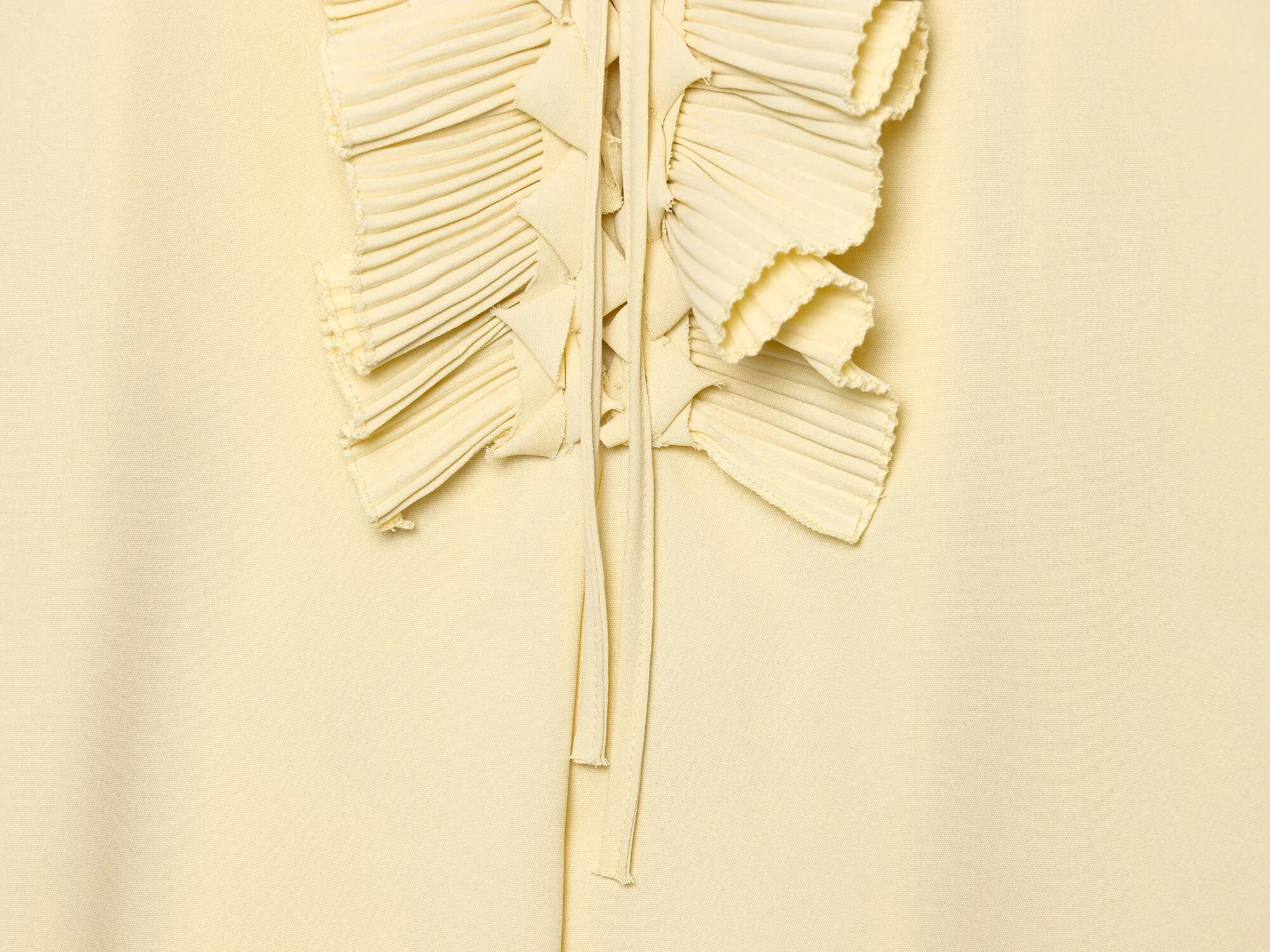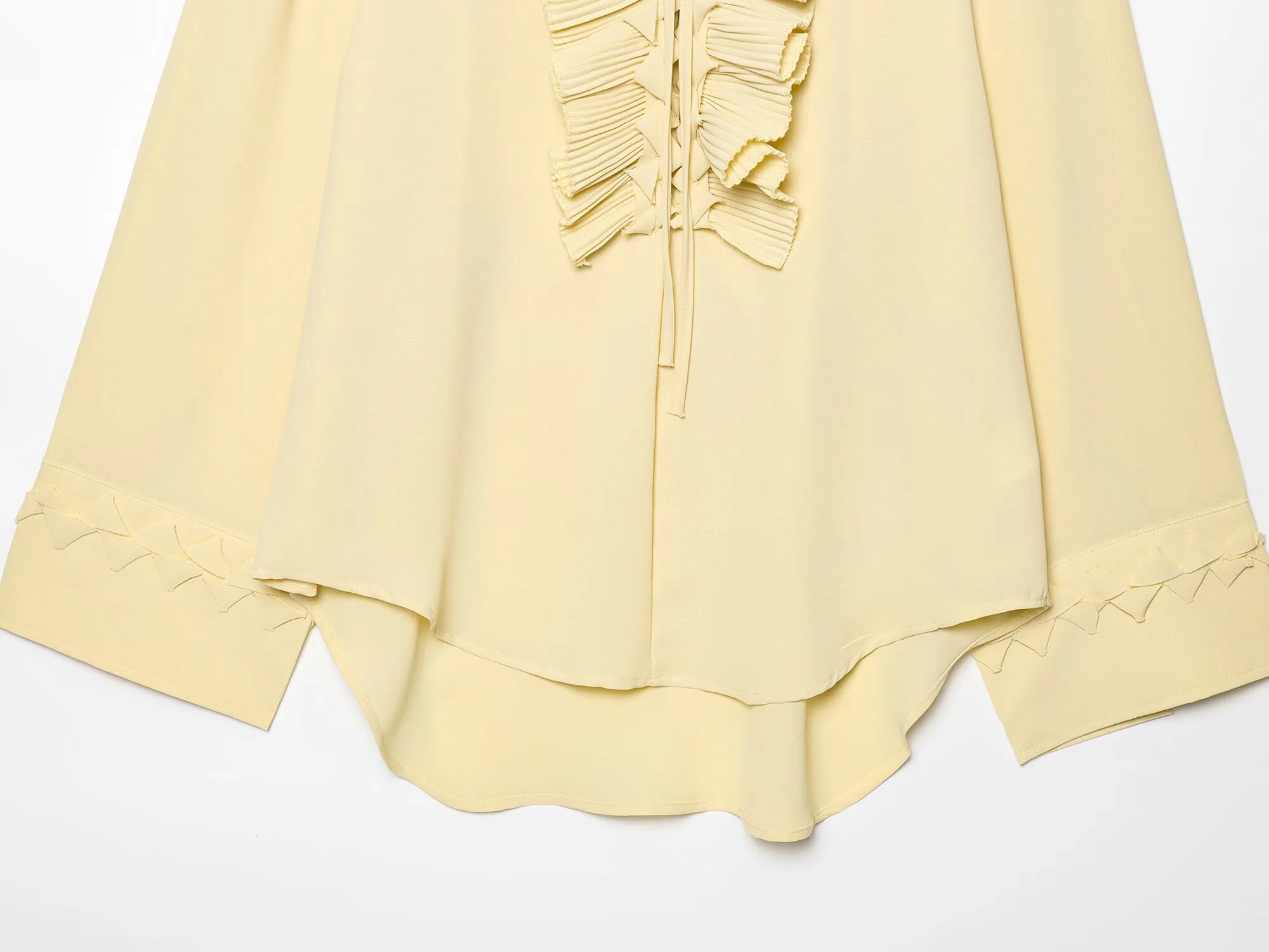 DEEABAE New Women’s Spring/Summer Versatile Long Sleeve Loose V-neck Wave Style Dress Shirt High Waist Skirt Set