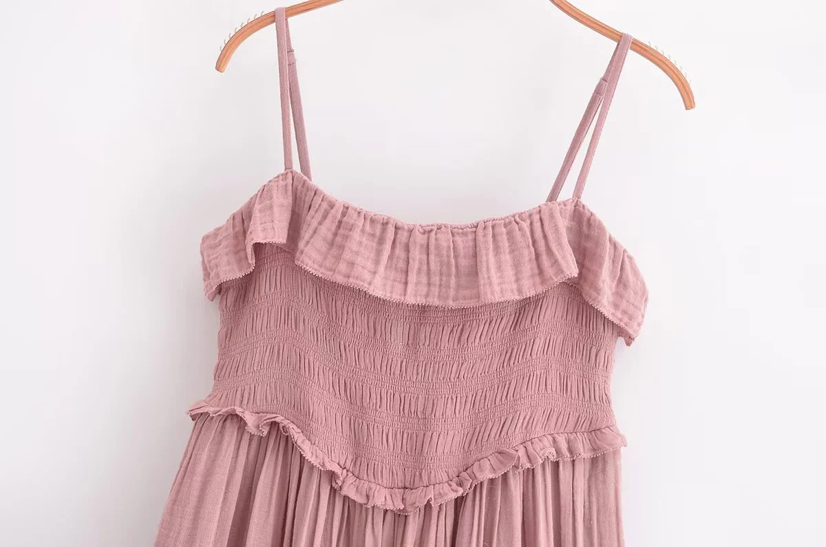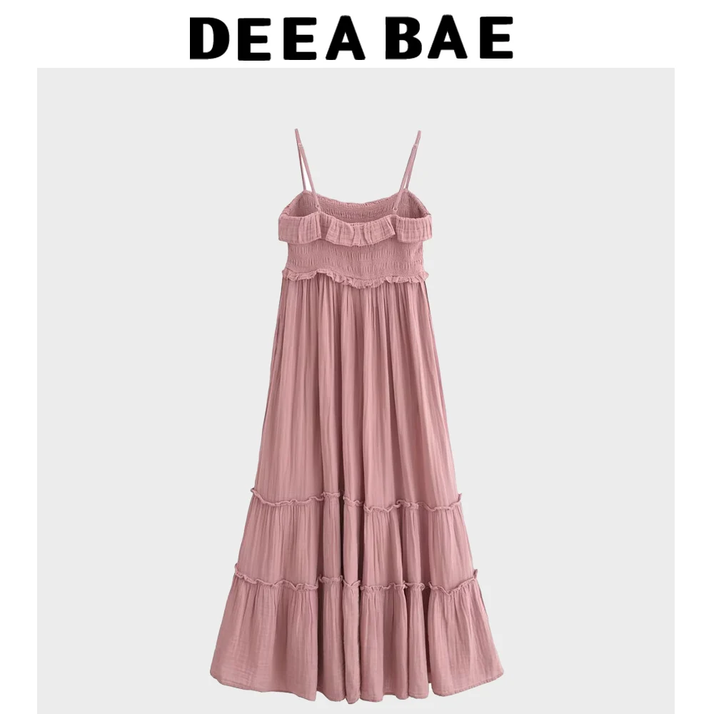 DEEABAE Pink Beach Photography Stunning Beach Lotus Leaf Edge Fake Style Suspender Dress Long Skirt Flowing Women
