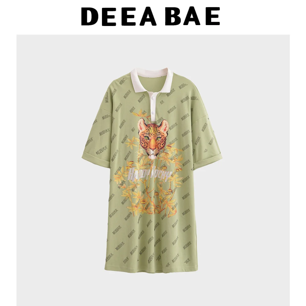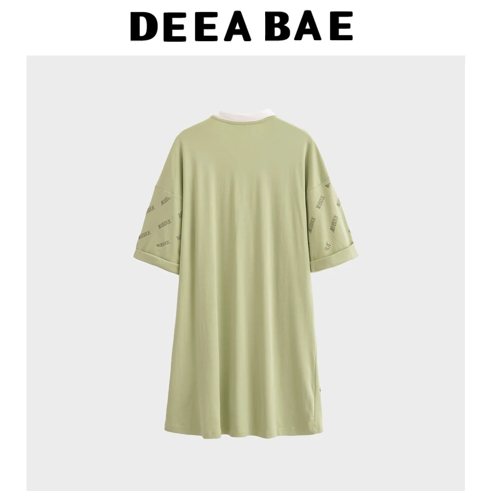DEEABAE Polo collar short sleeved T-shirt skirt for women to reduce age and slim down summer long skirt new knee length dress