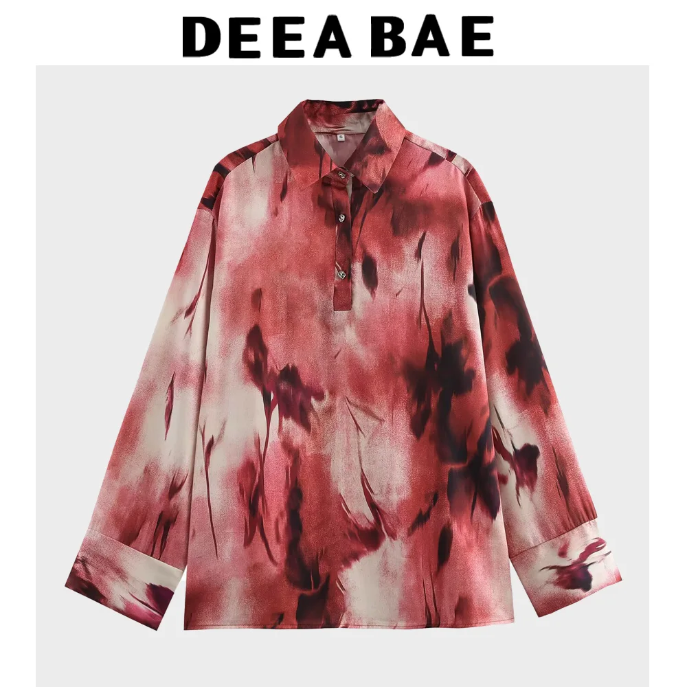 DEEABAE Retro Tie-dye Design Niche High-end Fashionable French shirt Loose Temperament Slim Long-sleeved Shirt