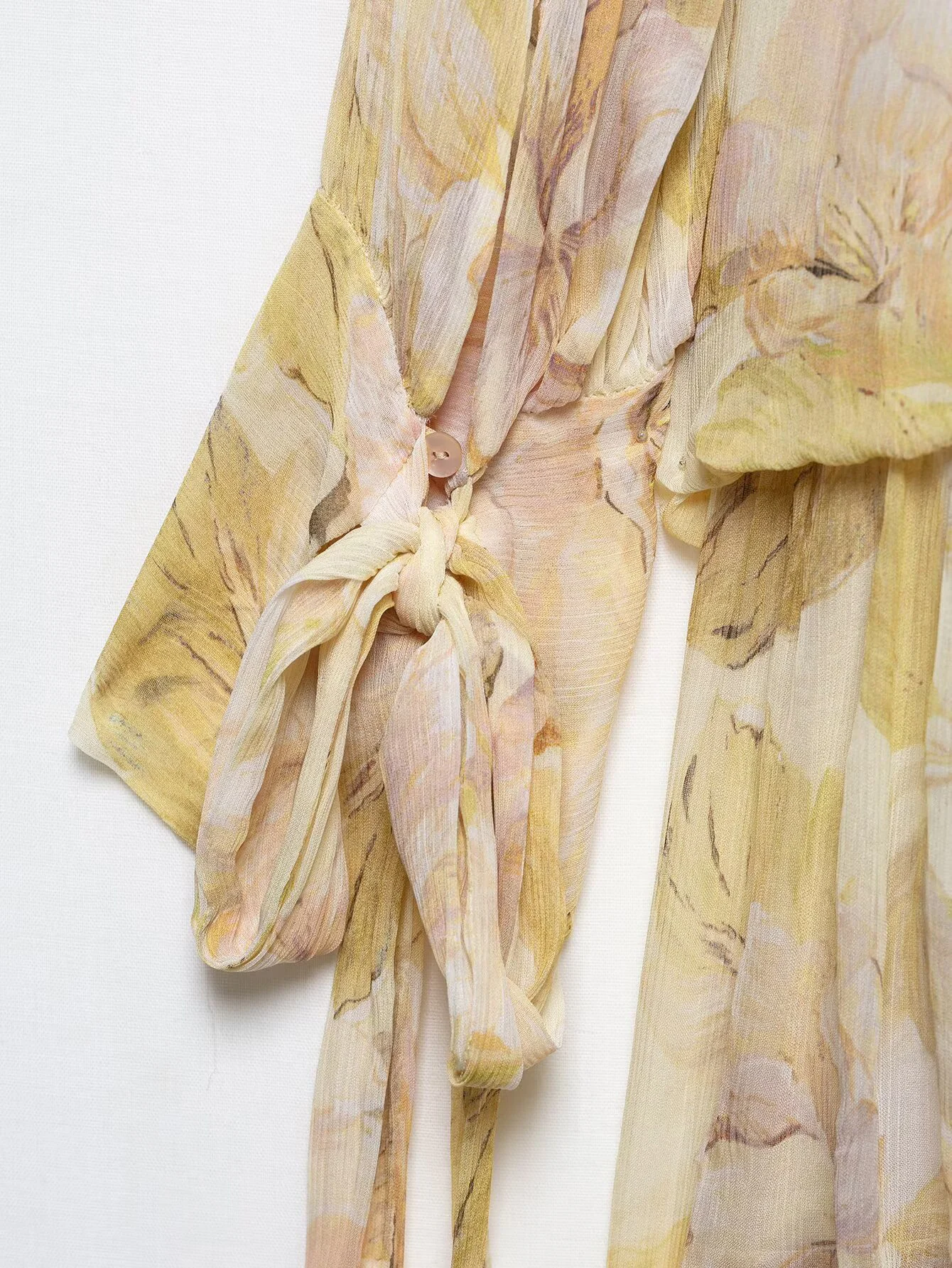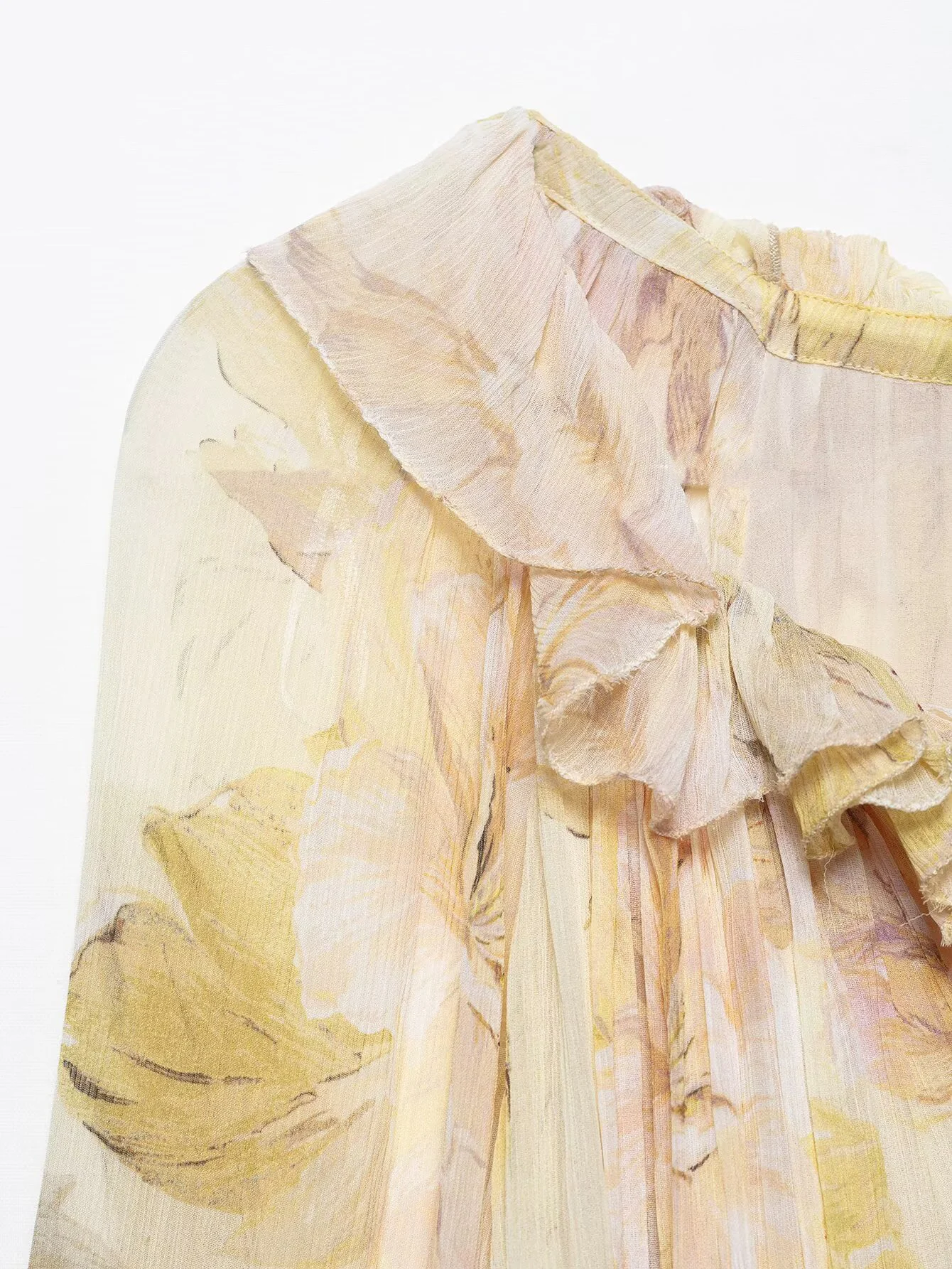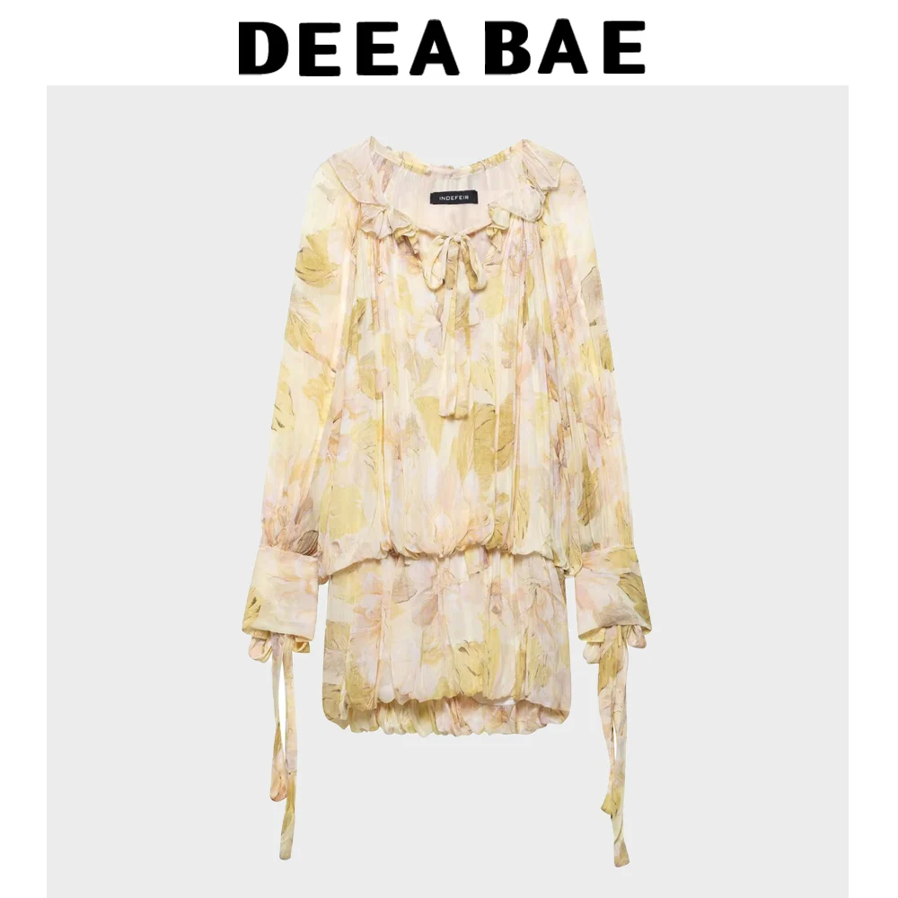 DEEABAE Romantic French Satin Printed Long Sleeved Round Neck Dress For Spring And Summer Stunning A-line Short Skirt