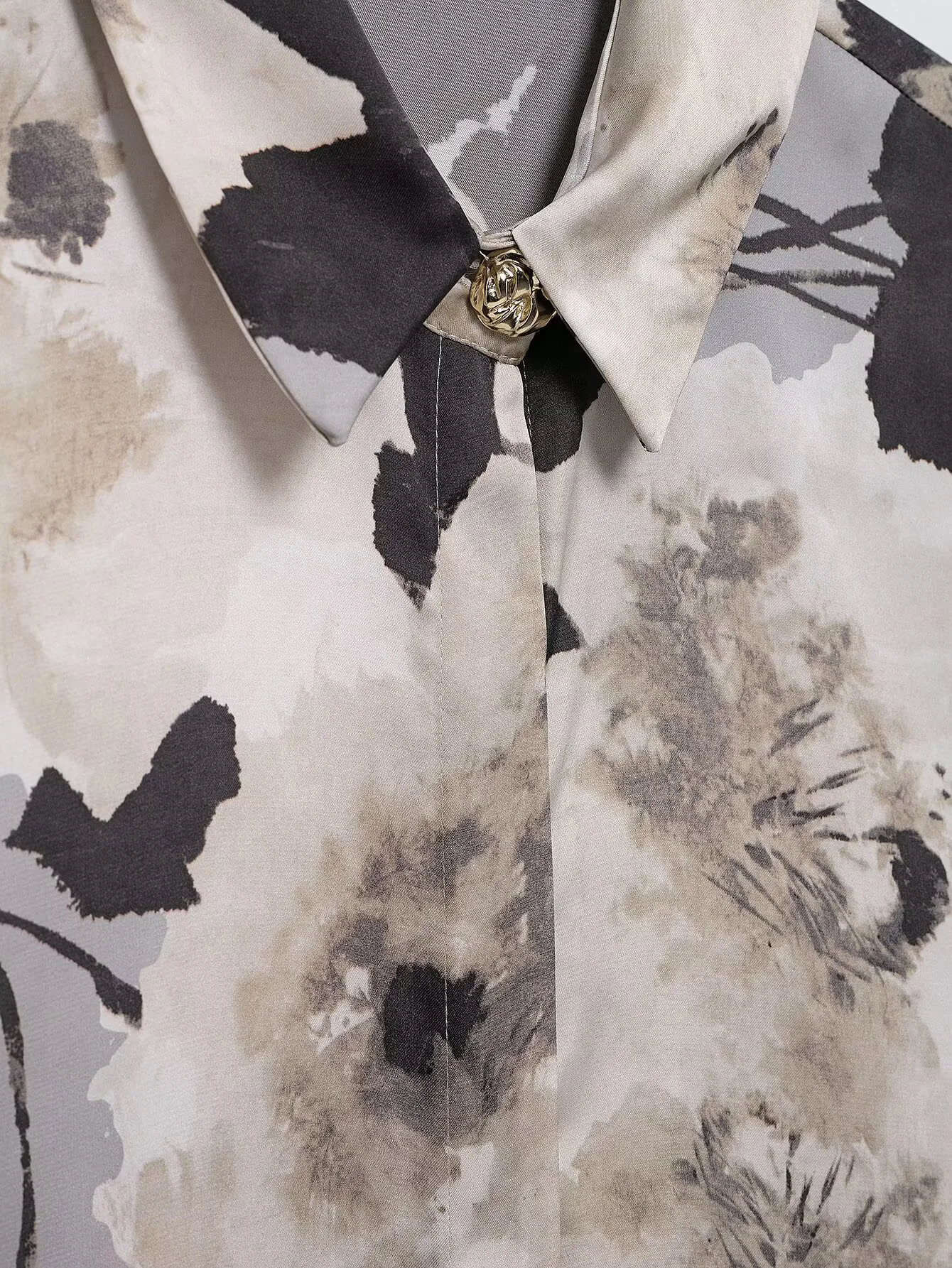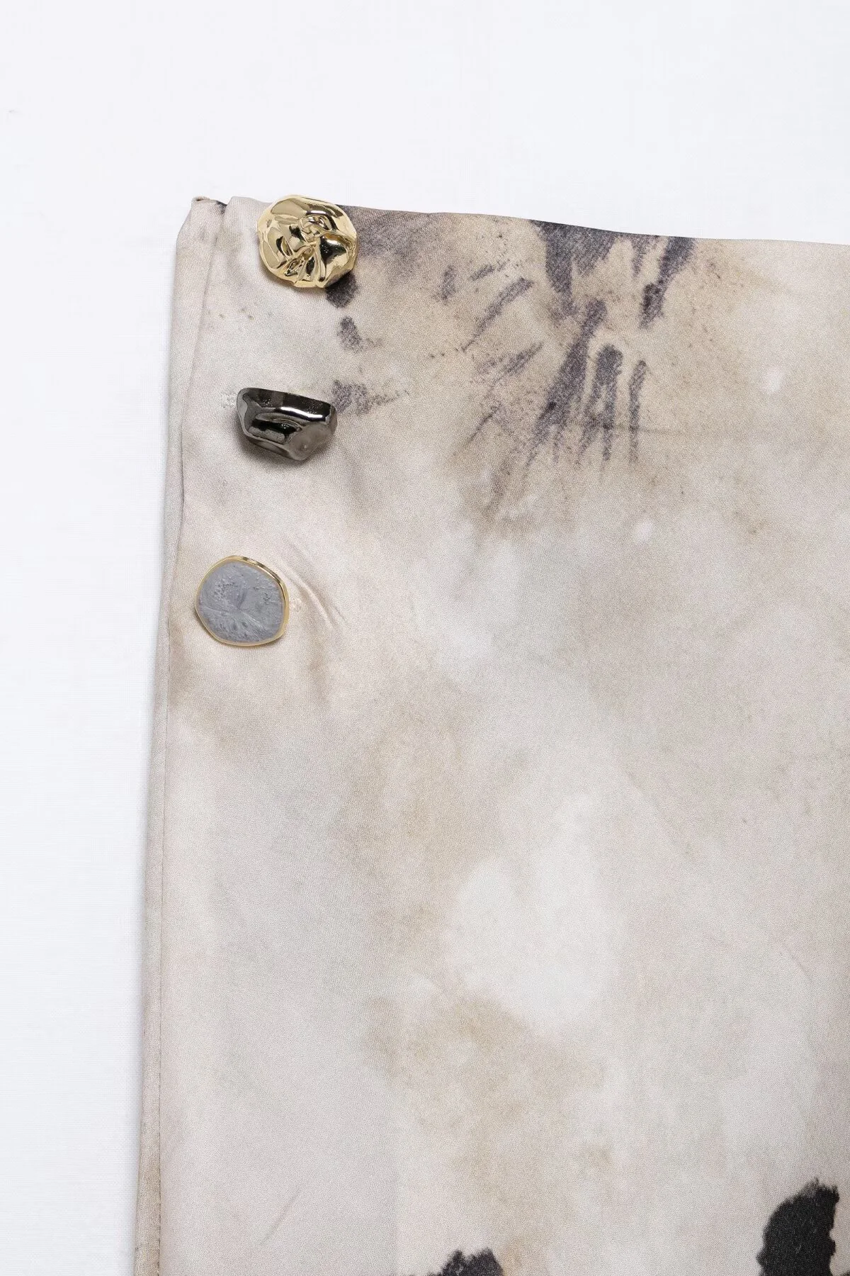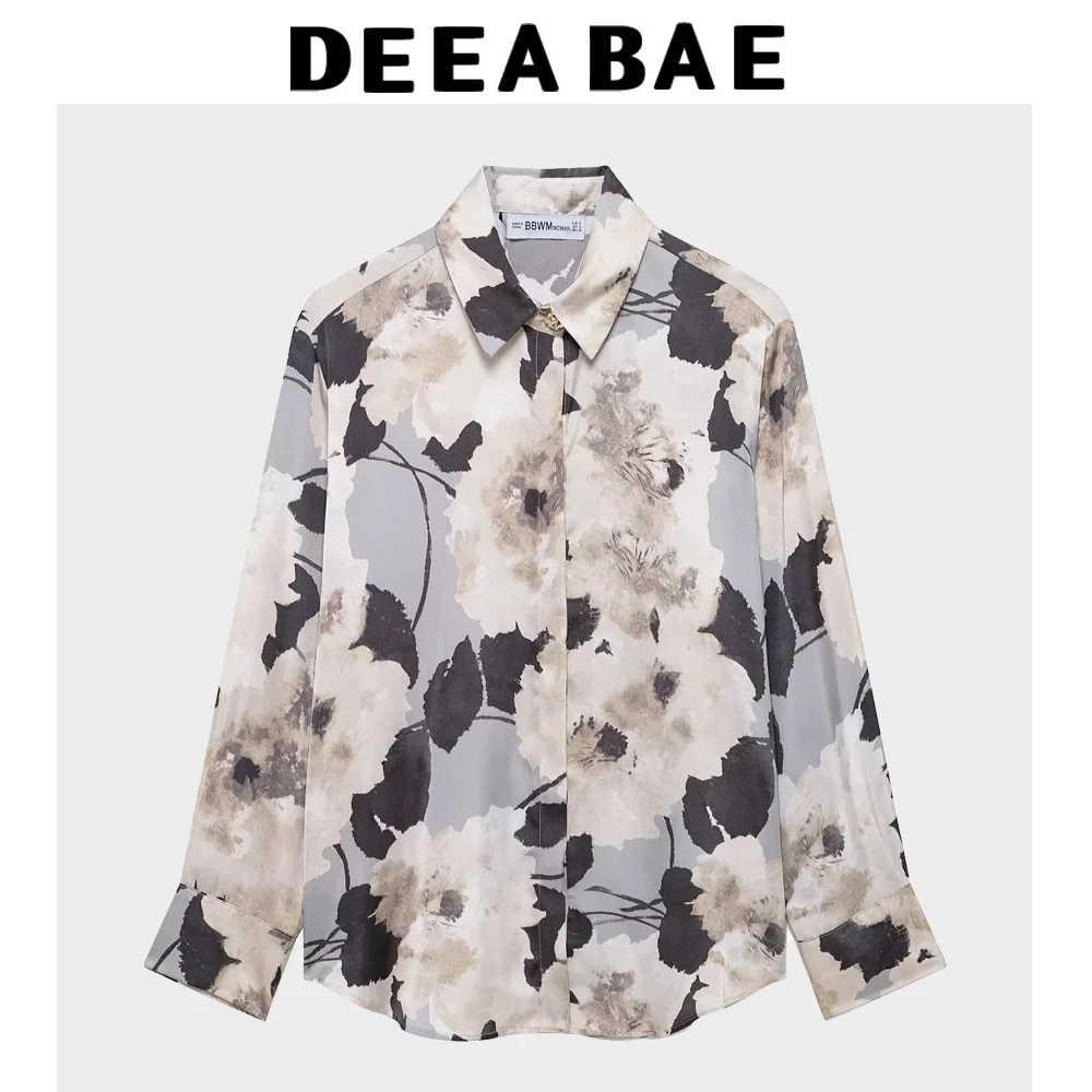 DEEABAE Set Woman 2 Pieces Chic And Elegant Fashion Temperament Satin Texture Printed Shirt Midi Skirt