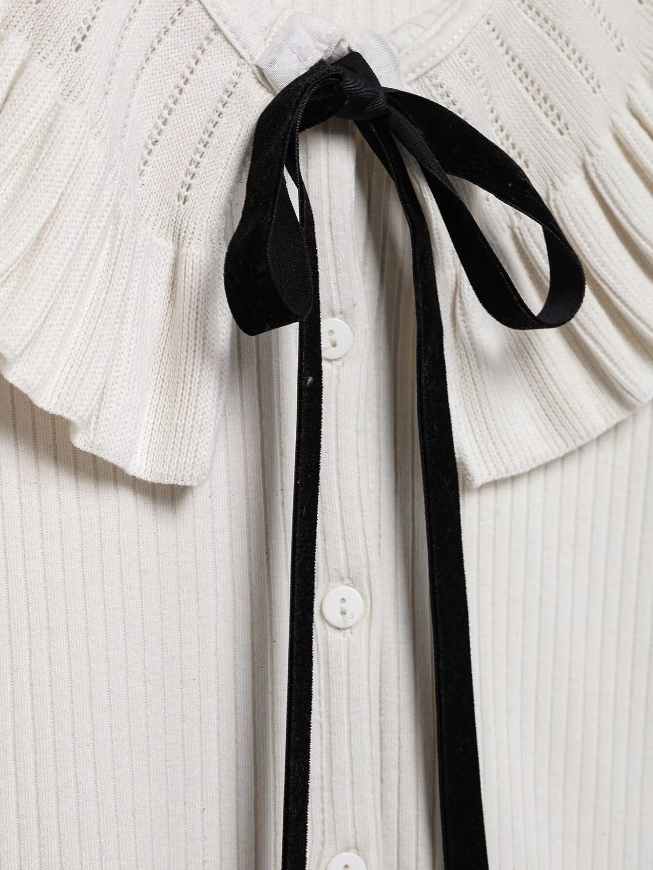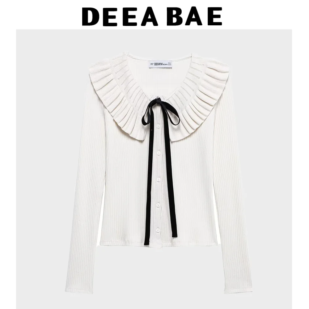 DEEABAE Small Doll Collar Slimming Knitted Cardigan With Bow Decoration Knitted Collar Slim Fit Long Sleeved Knitted Jacket