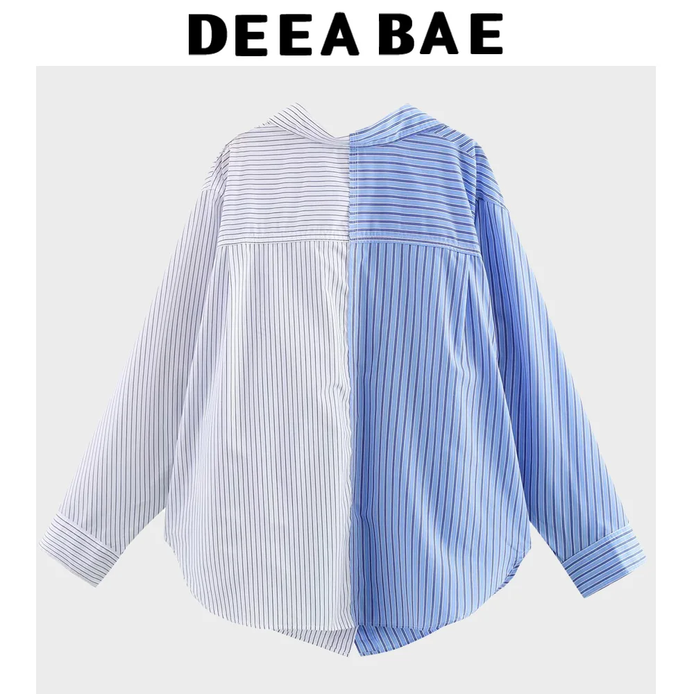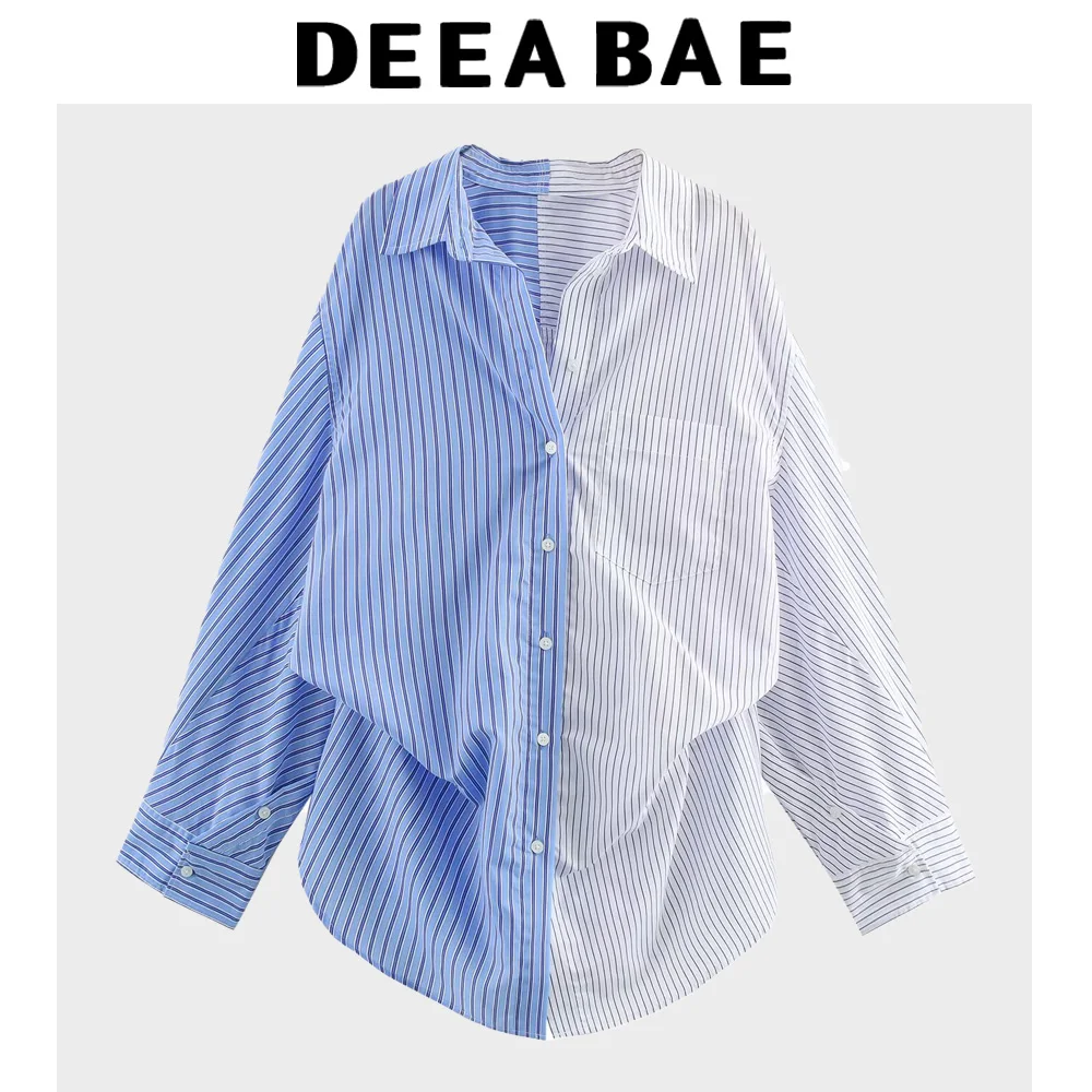 DEEABAE Splicing Striped Shirt Women 2025 Spring New Fashion Loose Design Niche Thin Shirt Sunscreen Top Jacket