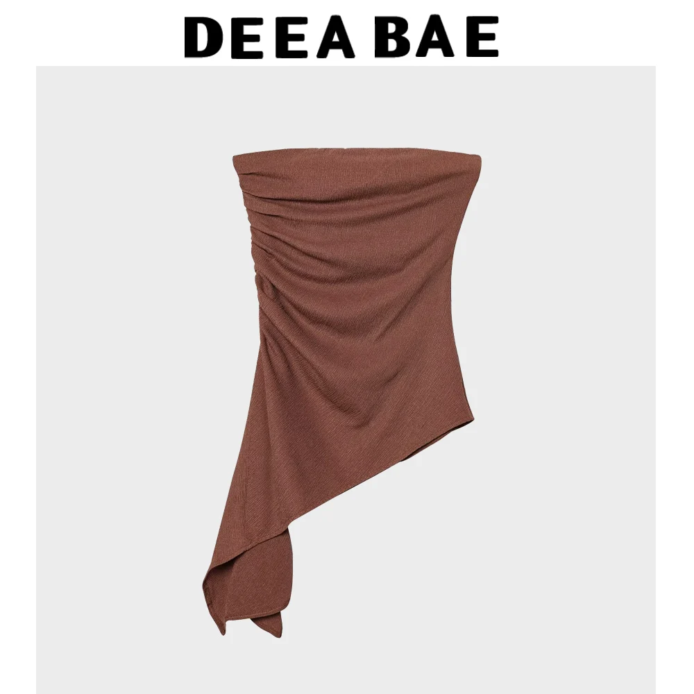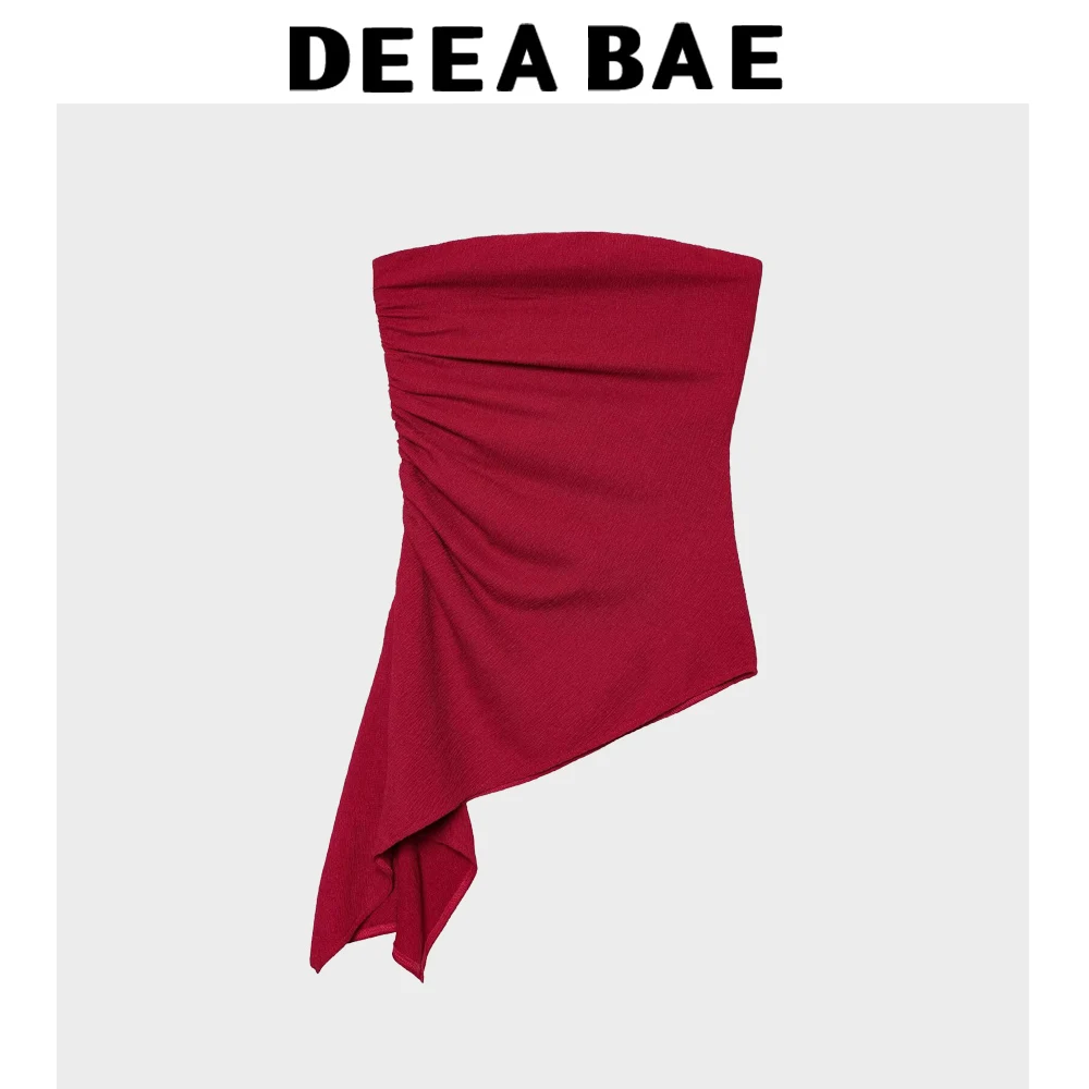 DEEABAE Spring 2025 New Women’s Clothing Fashionable Temperament Versatile Texture One Line Chest Wrapped Top