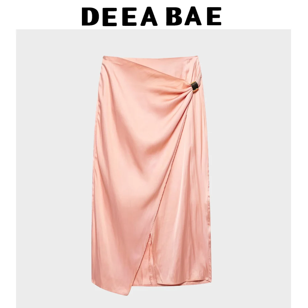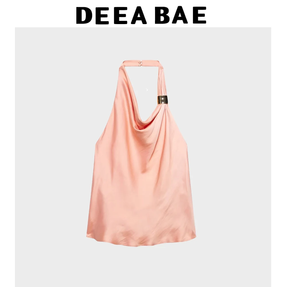 DEEABAE Spring 2025 New Women's Sexy Backless Halter Neck Top With Gold Inlay Silk Texture MIDI Skirt