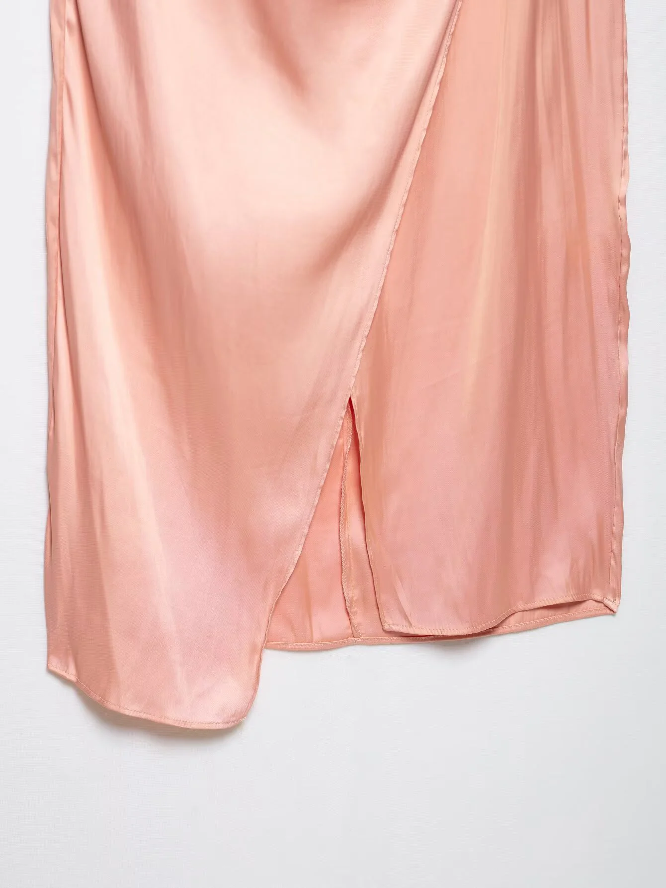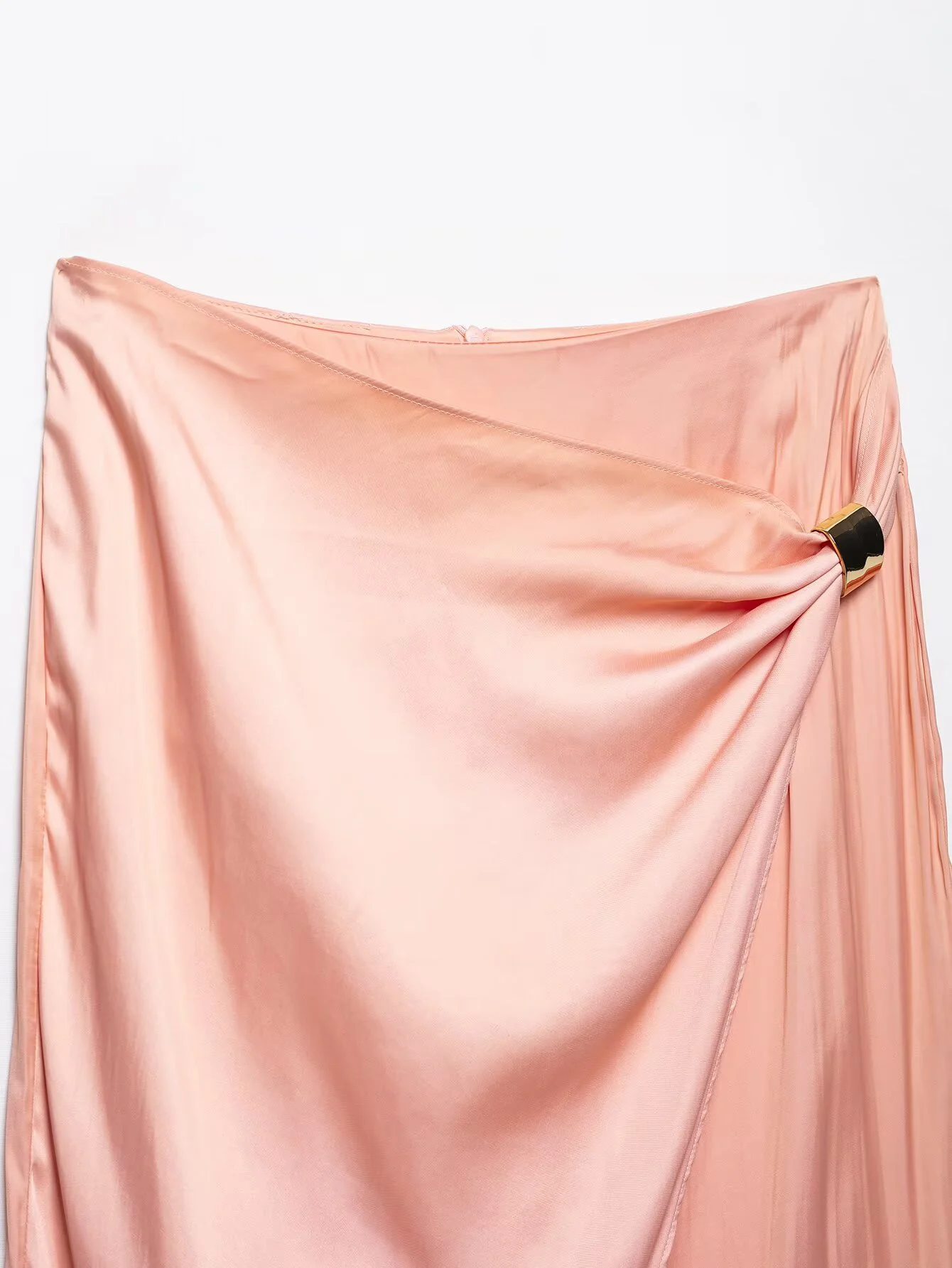 DEEABAE Spring 2025 New Women’s Sexy Backless Halter Neck Top With Gold Inlay Silk Texture MIDI Skirt