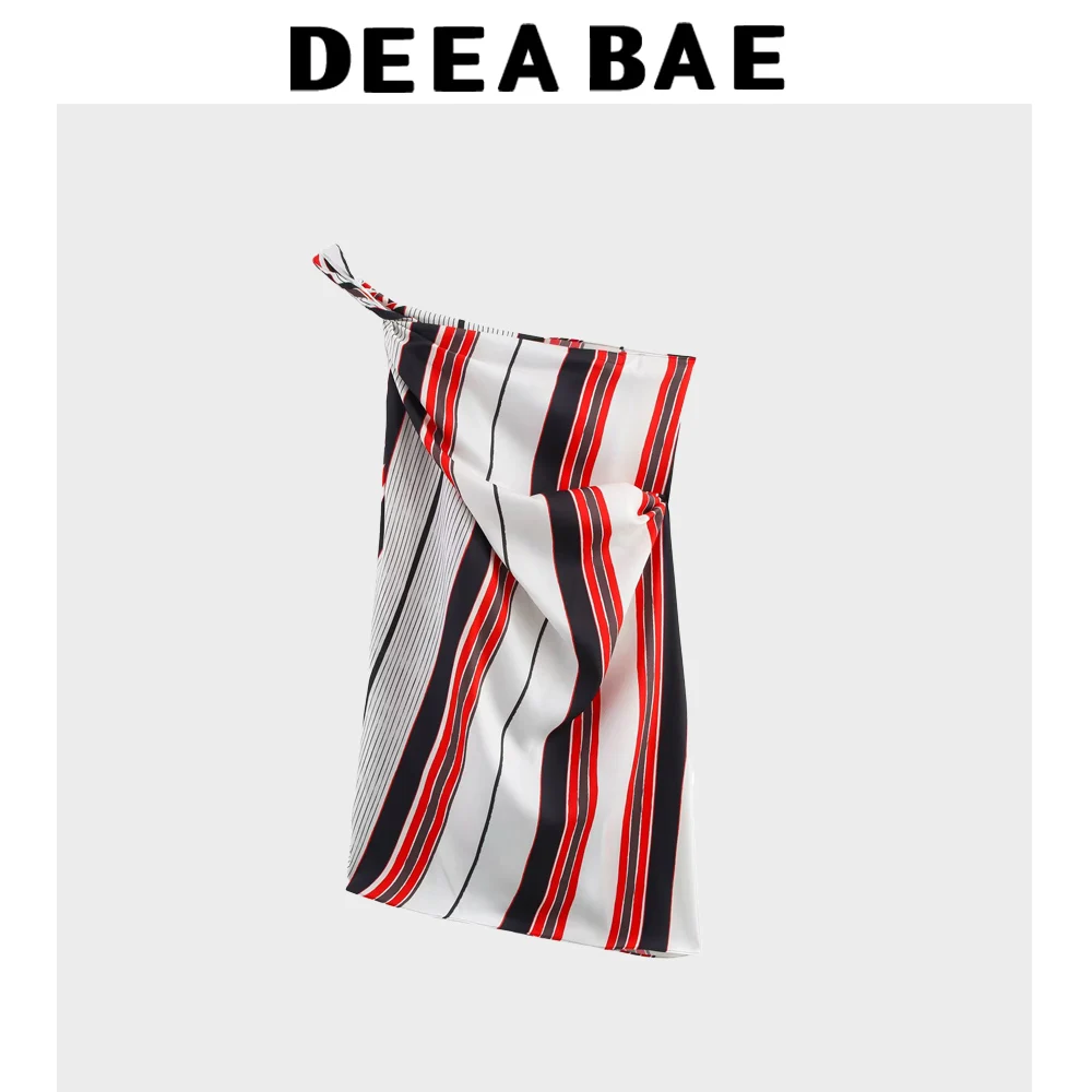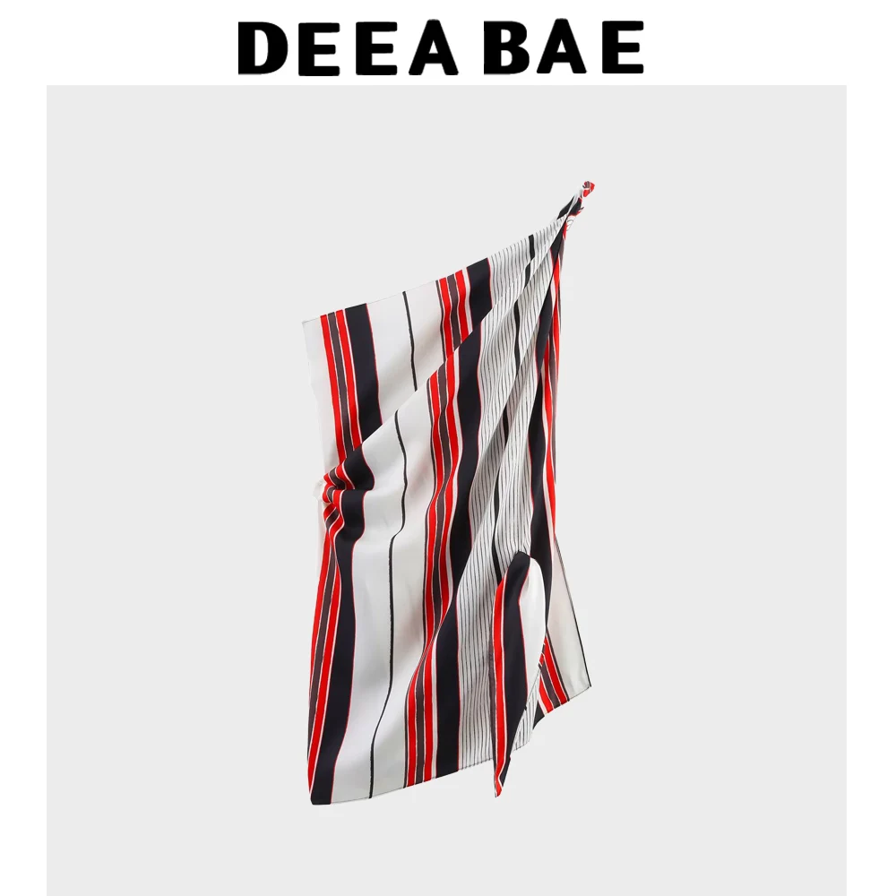 DEEABAE Spring And Autumn/Summer Striped Slant Neck Top Sweet And Personalized Style Sweet Top