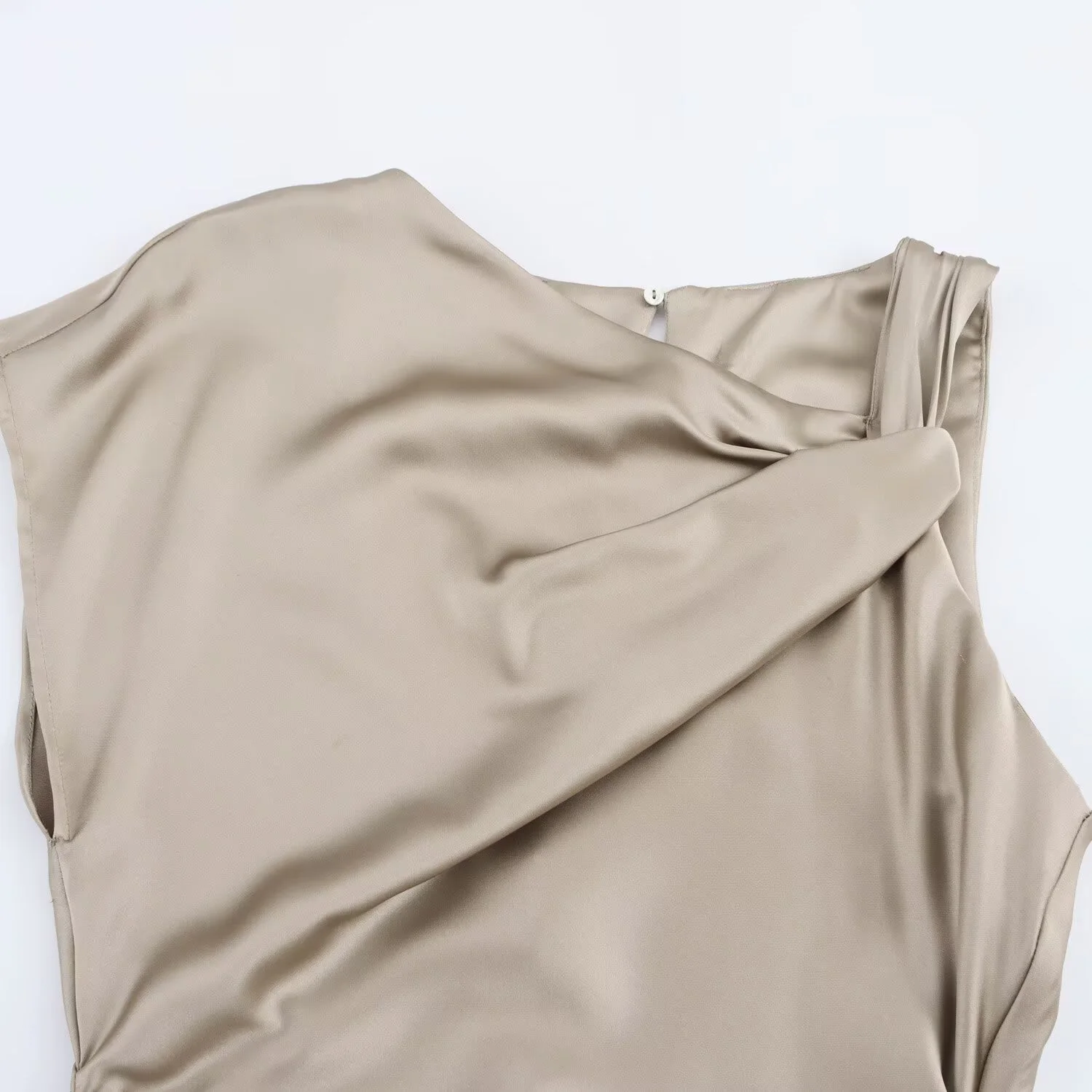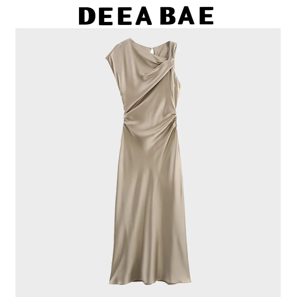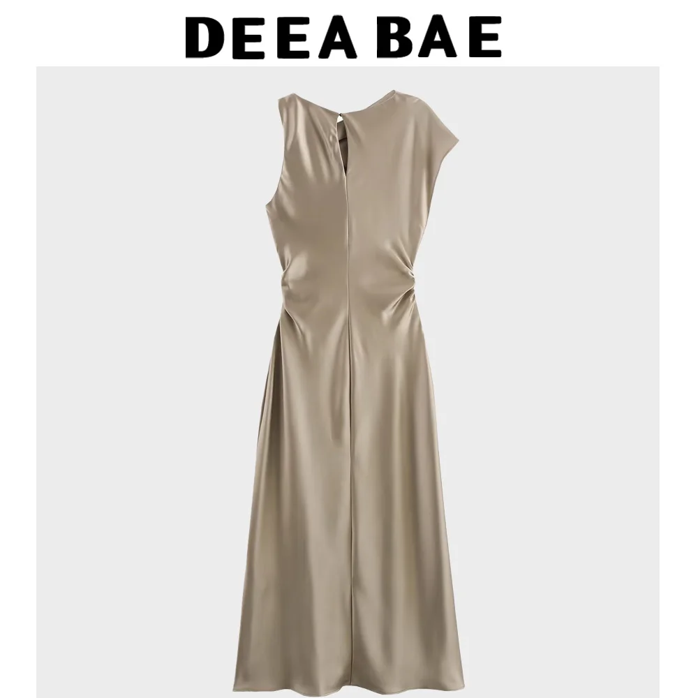 DEEABAE Spring And Summer New High-end Slim Fit Temperament Silk Texture Pleated Vest Dress For Women
