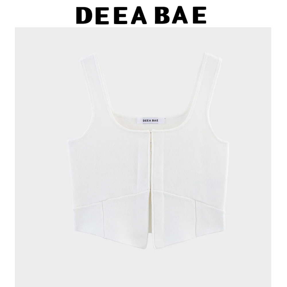 DEEABAE Spring And Summer New Women’s Casual Fashion Sleeveless Simple Wide Shoulder Strap Knitted Short Top