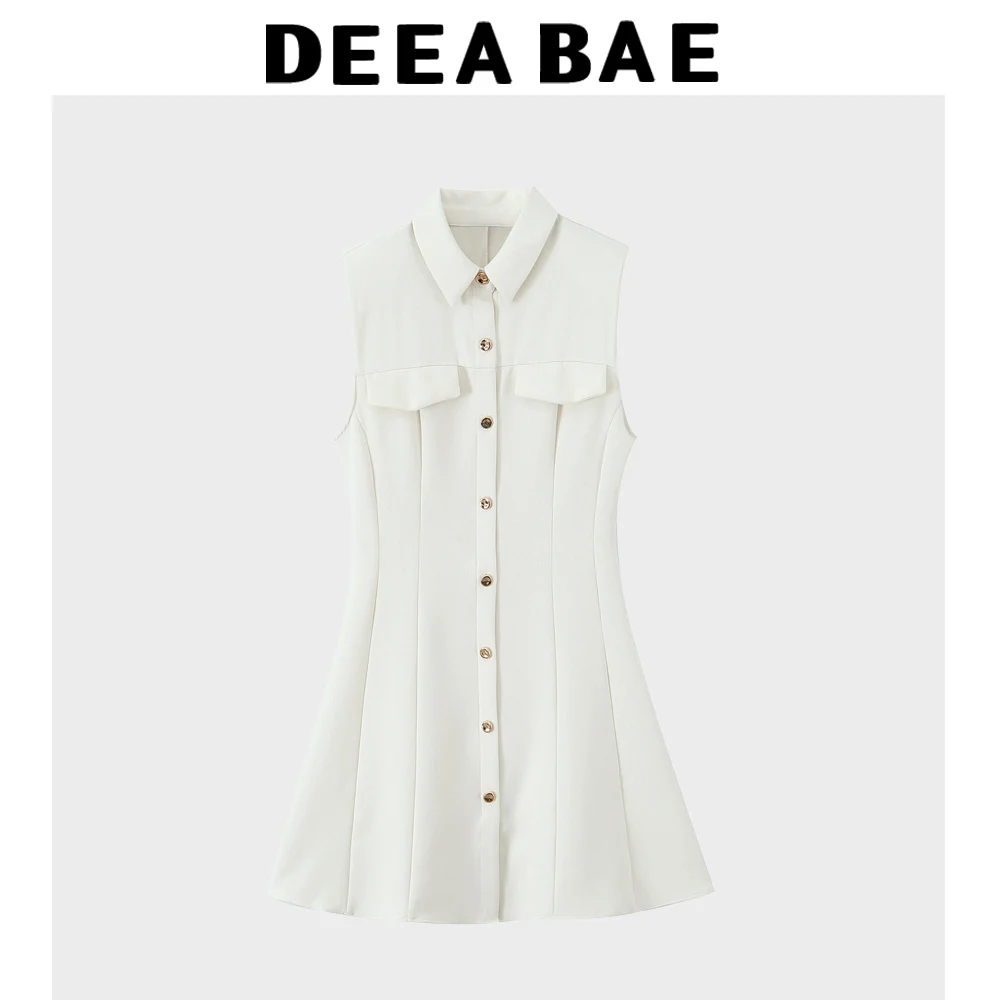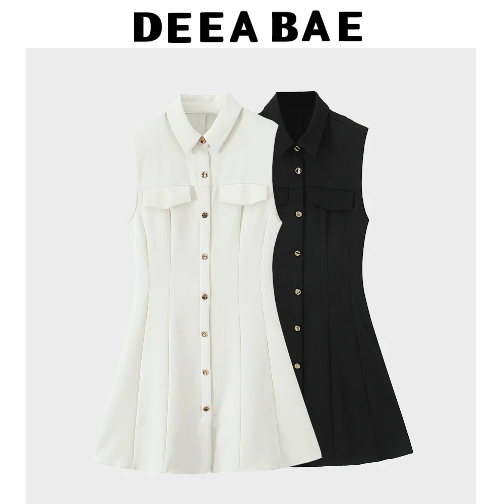 DEEABAE Spring And Summer New Women's Clothing American Commuting Metal Texture Button Sleeveless Lapel Crepe Cloth Dress