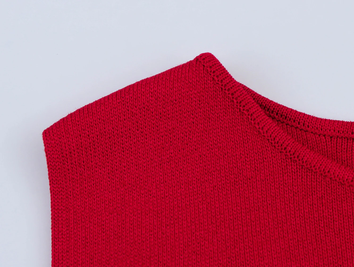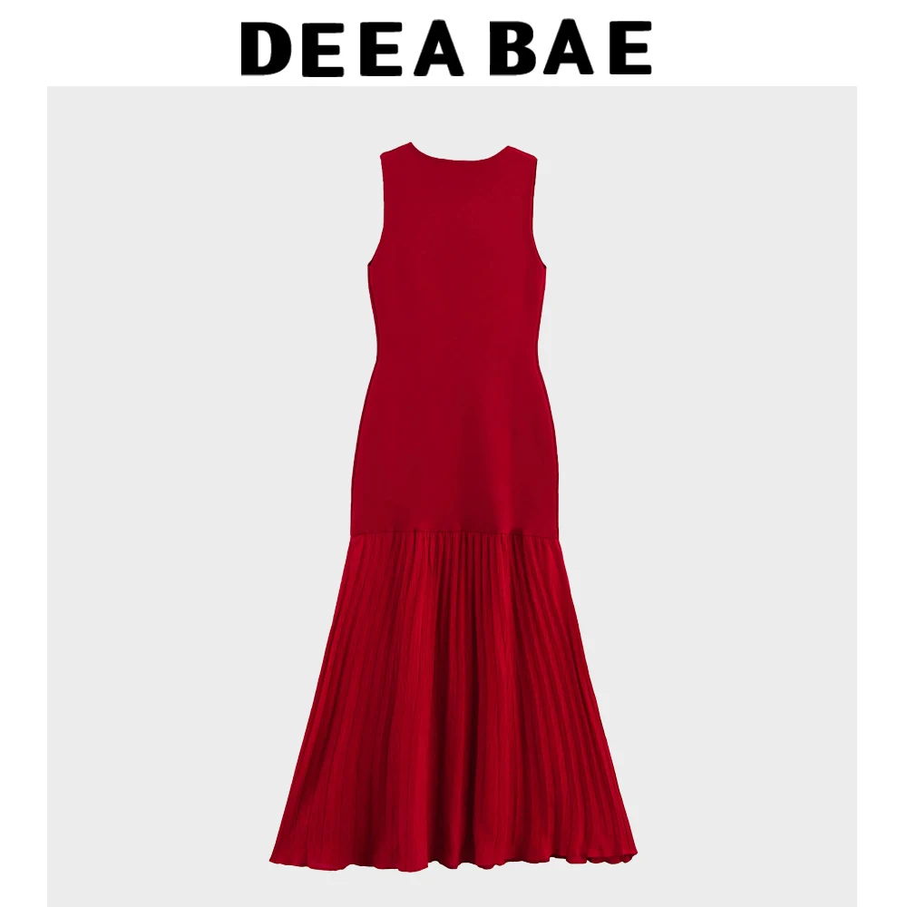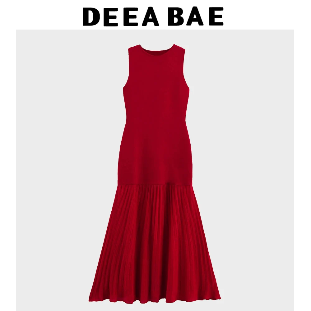 DEEABAE Spring And Summer New Women’s Pleated Patchwork Round Neck Simple Temperament Knitted Sleeveless Long Dress