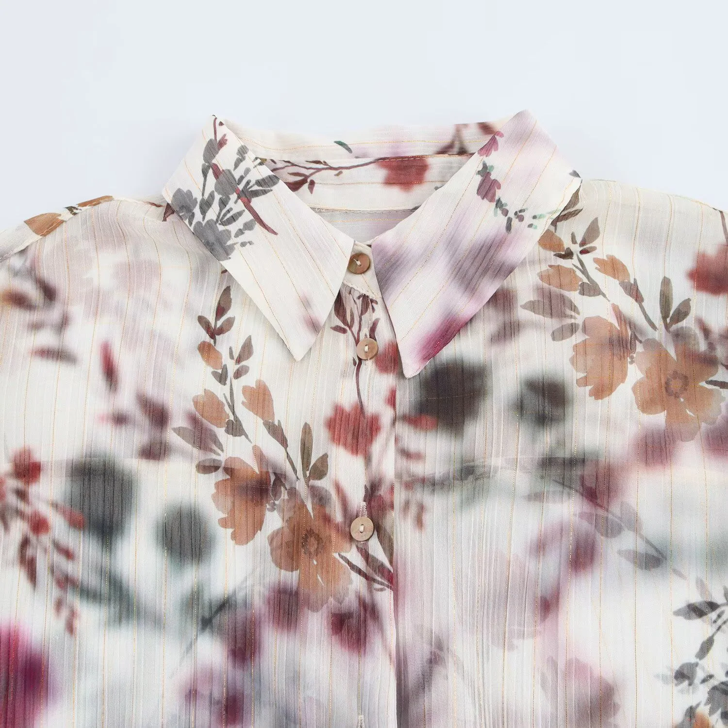 DEEABAE Spring New Arrivals Women’s Wear Metallic Color Line Printing Fashionable Temperament Lapel Long Sleeve Shirt