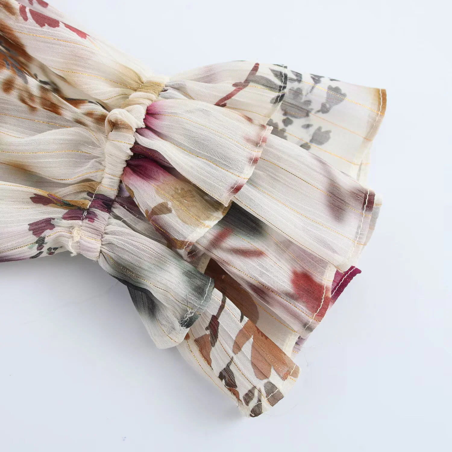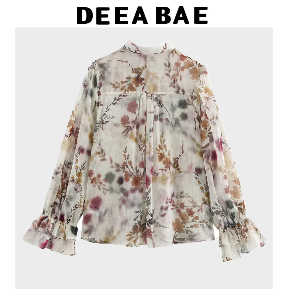 DEEABAE Spring New Arrivals Women's Wear Metallic Color Line Printing Fashionable Temperament Lapel Long Sleeve Shirt
