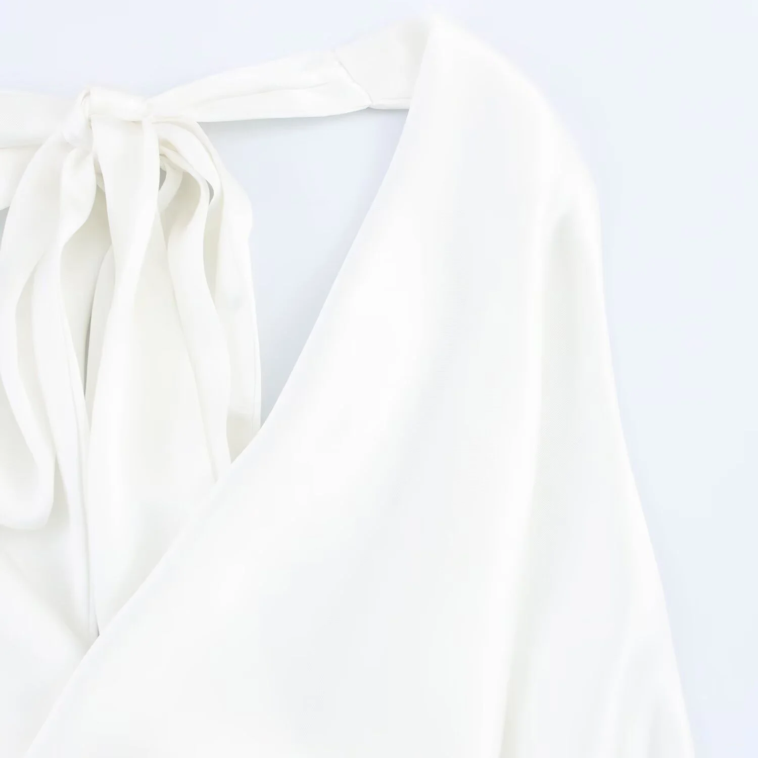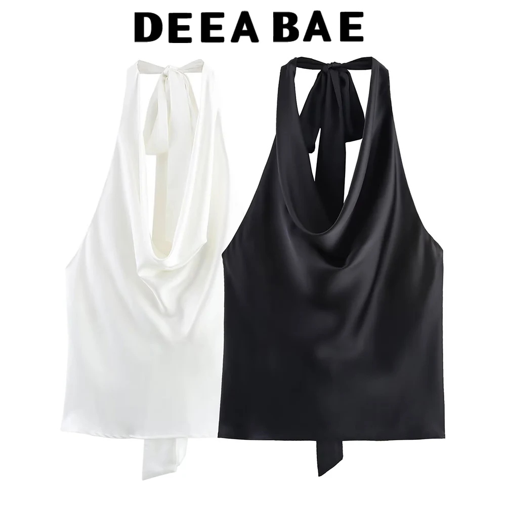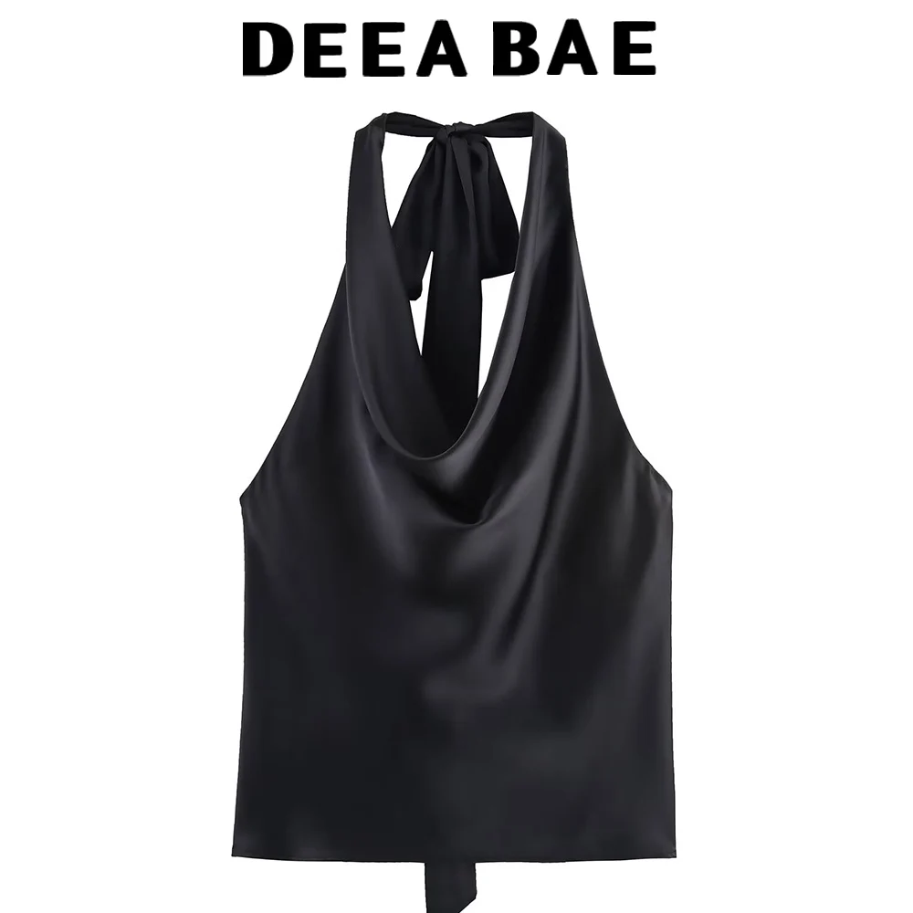 DEEABAE Spring New Product Super Spicy Low Cut Deep V-neck Sleeveless Hanging Neck Collar Backless Silk Satin Texture Top
