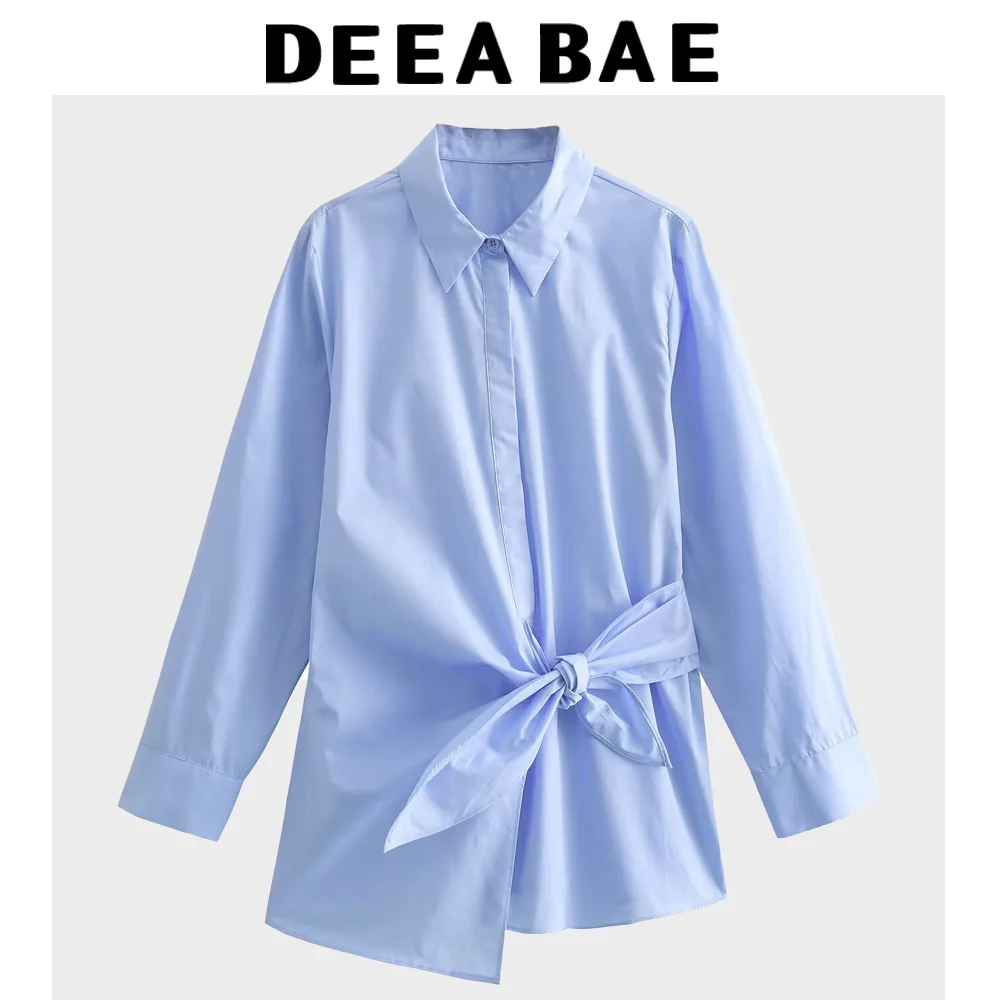 DEEABAE Spring New Women's Clothing Design Slim Fit Versatile Poplin Shirt Side Tie Bow Long Dleeve Top