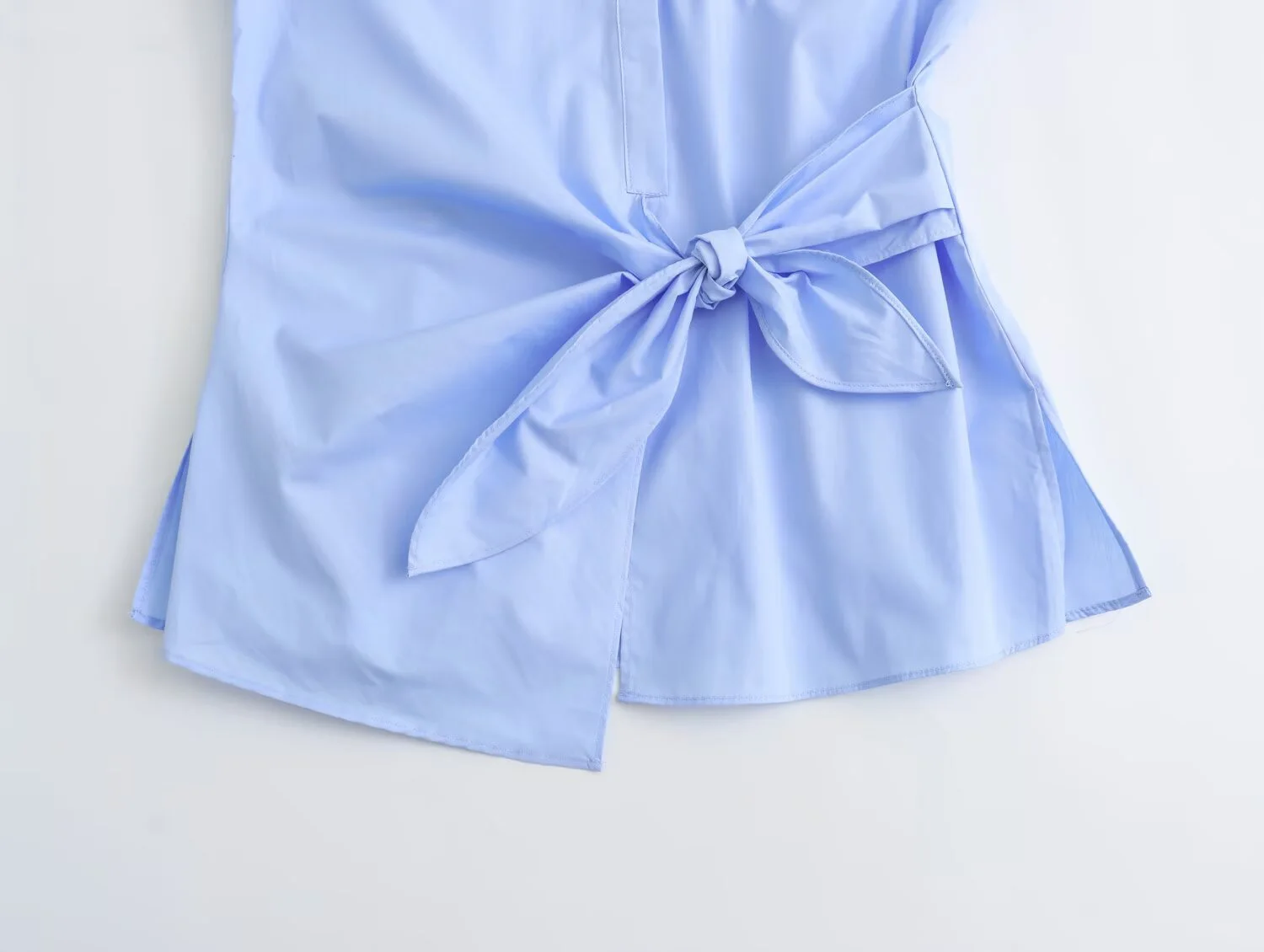 DEEABAE Spring New Women’s Clothing Design Slim Fit Versatile Poplin Shirt Side Tie Bow Long Dleeve Top