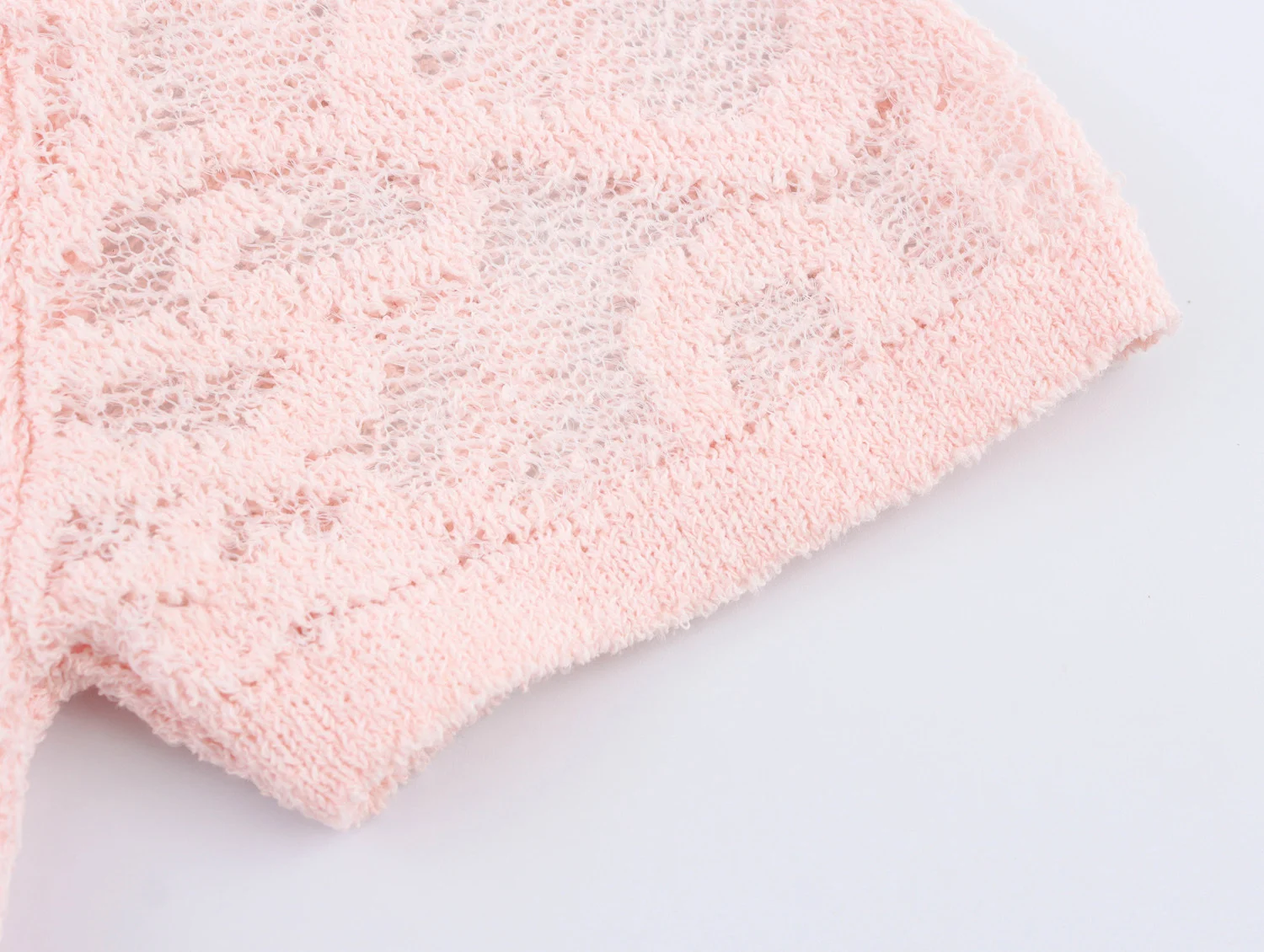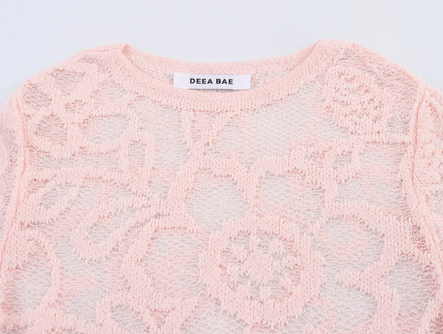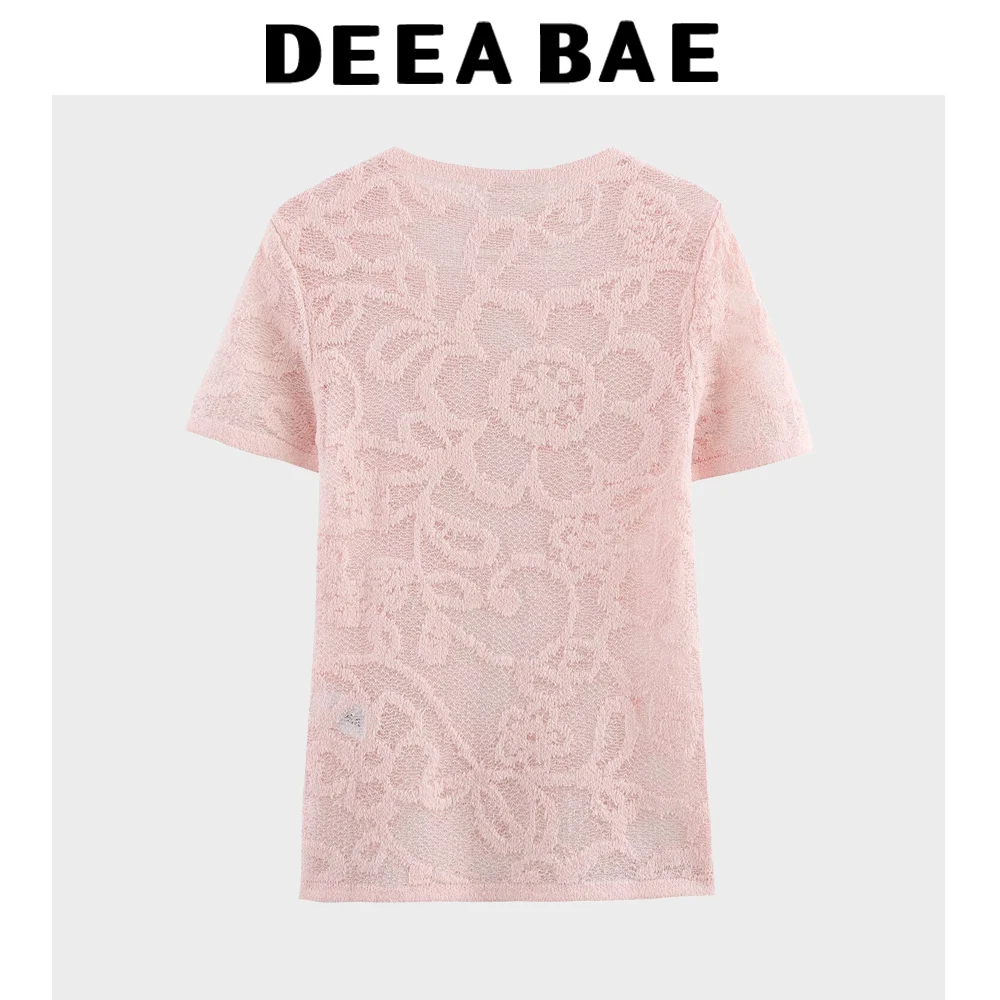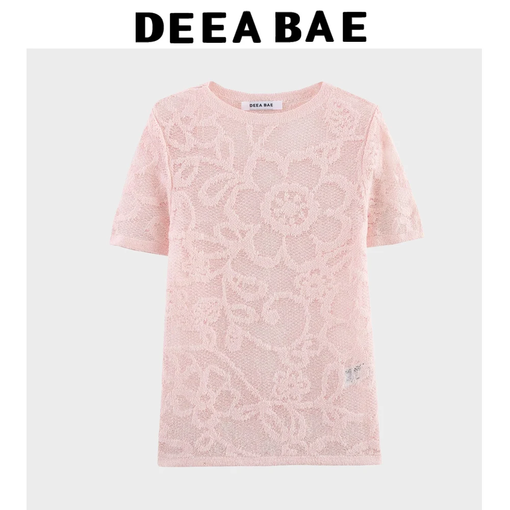 DEEABAE Spring New Women’s Clothing Design Temperament Printed Texture Round Neck Short Sleeved Knitted Top